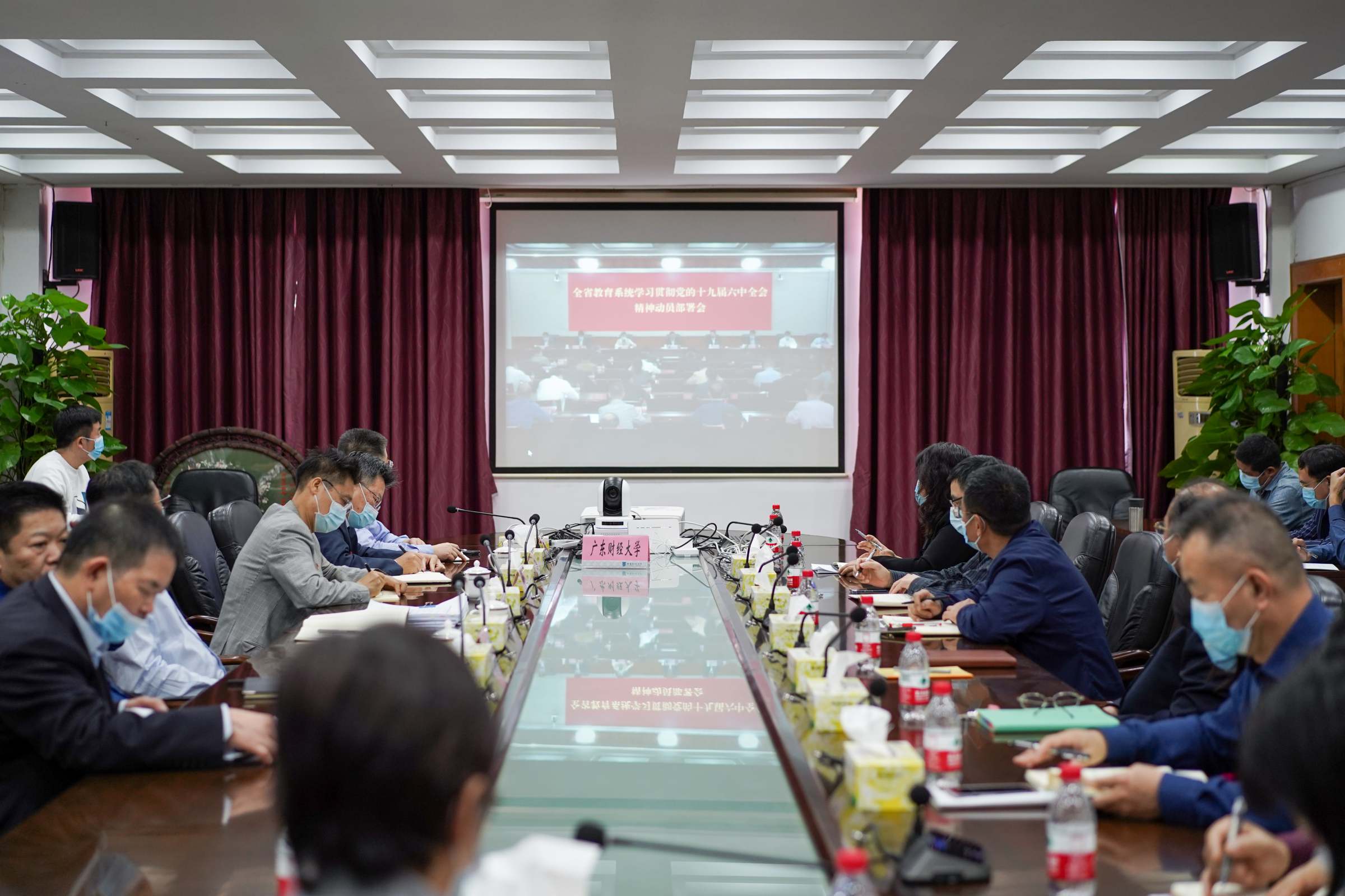 为学习贯彻习近平总书记在党的十九届六中全会上的重要讲话精神和全会精神,传达全省学习贯彻党的十九届六中全会精神干部大会会议精神,11月16日下午,全省教育系统学习贯彻党的十九届六中全会精神动员部署会召开,我校在行政楼第一会议室、第二会议室设立分会场。省委教育工委党史学习教育第七巡回指导组副组长任刚、校党委书记郑贤操、校党委副书记刘祖华、副校长陈国栋、邹新月、丁友刚,党史学习教育领导小组成员、办公室成员,各职能部门负责人和院系党组织负责人参加此次网络视频会议。