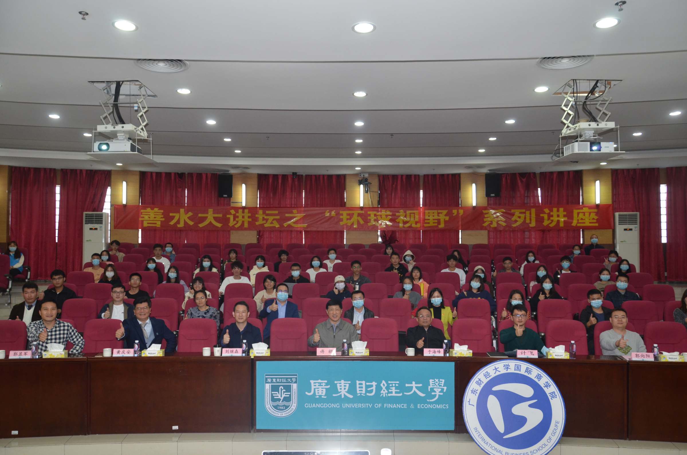 本次讲座由科研处、国际交流与合作处、国际商学院共同主办。广东外语外贸大学非洲研究院执行院长刘继森、广东外语外贸大学专职研究员计飞,我校国际商学院、国际交流与合作处负责人,100余位师生到场聆听。