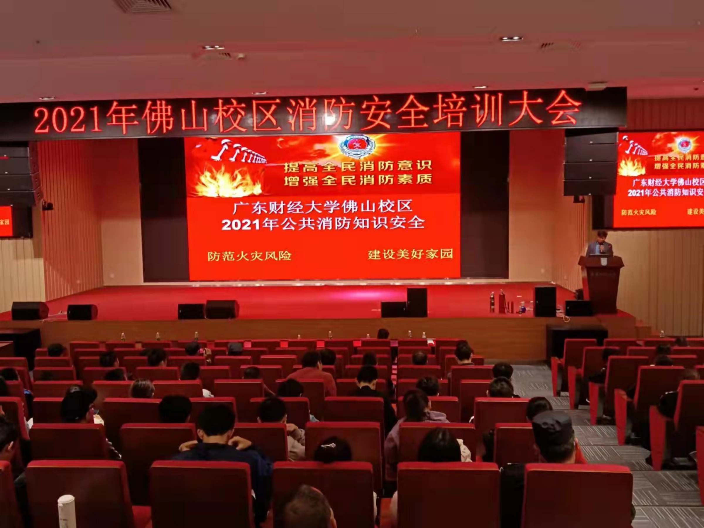 11月18日,佛山校区举办2021年消防安全培训大会。大会包括消防安全培训和消防演练活动两个环节,分别在同心楼报告厅和篮球场举行。佛山校区管委会保卫办主任黄进、门诊部副主任余烈中、保卫办全体工作人员、各单位兼职消防安全员、佛山校区辅导员、各学院学生代表和外包单位工作人员共计247人参加。