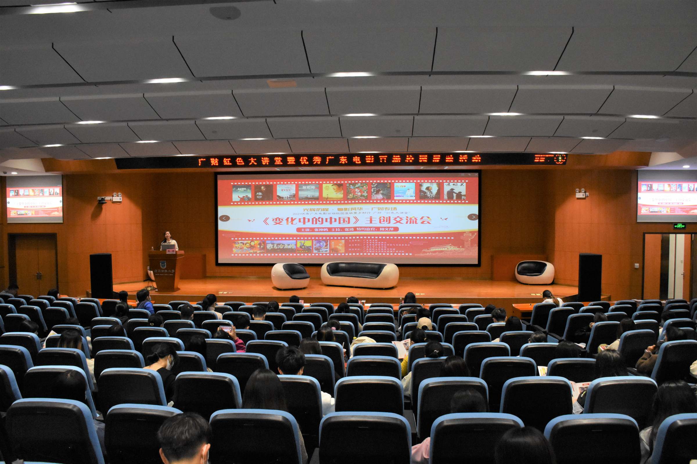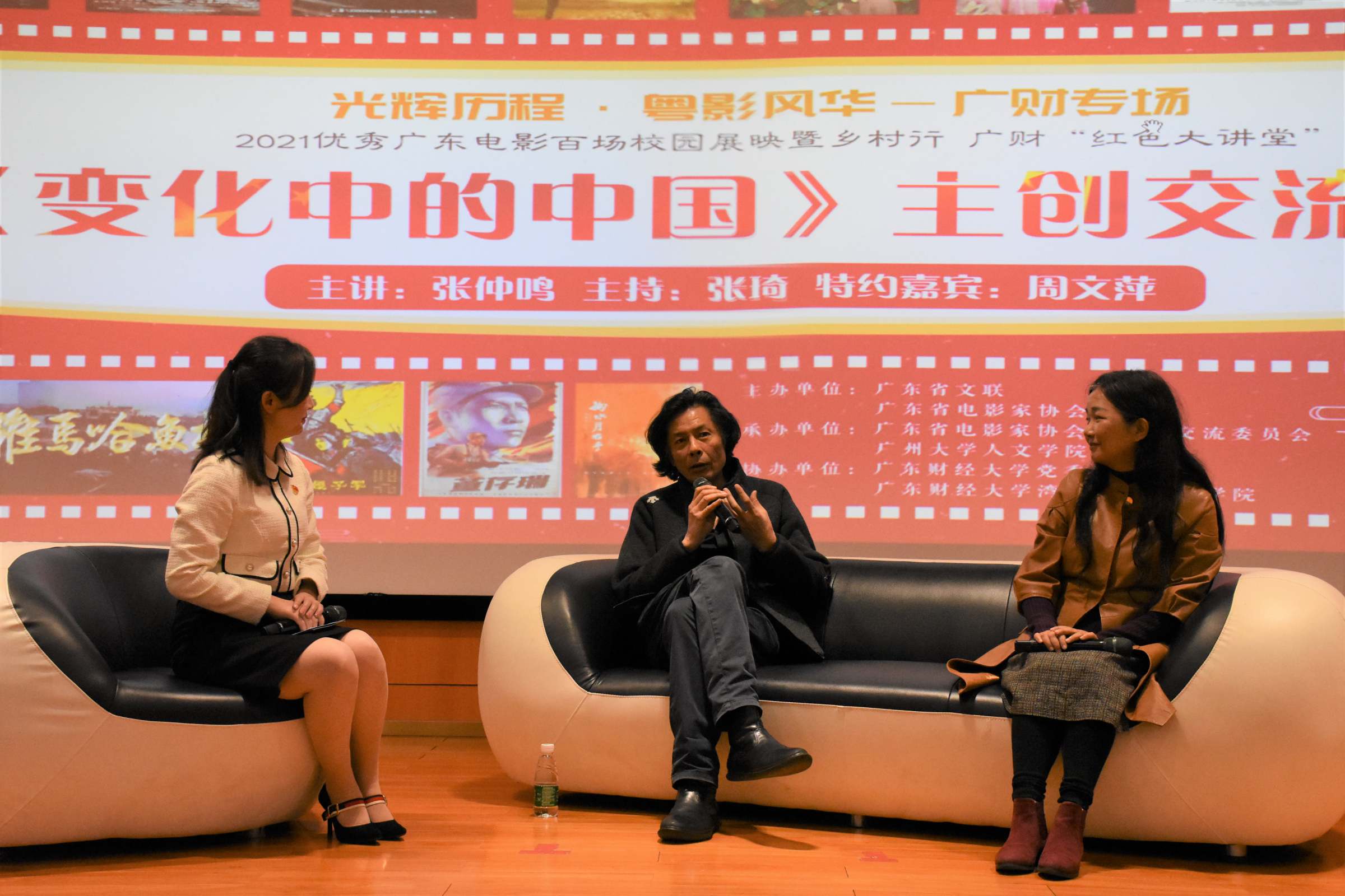 为深入学习贯彻党的十九届六中全会精神,扎实推进党史学习教育,大力推动红色文化进校园,11月23日晚,由广东省文联、广东省电影家协会主办,党委宣传部、湾区影视产业学院协办的广财红色大讲堂暨优秀广东电影百场校园展映活动在广州校区正心堂举行。深圳广电影视股份有限公司、深圳电影制片厂有限公司原总经理助理、电影创作部主任、《变化中的中国·生活因你而火热》制片人张仲鸣,省影协副秘书长周文萍教授,校党委常委,党委宣传部、党委统战部部长陈光团,党委宣传部、统战部副部长邓欣欣及师生代表200余人参加活动。活动由湾区影视产业学院副院长张琦主持,佛山校区在图书馆学术报告厅设立分会场,师生代表150余人同步参加活动。