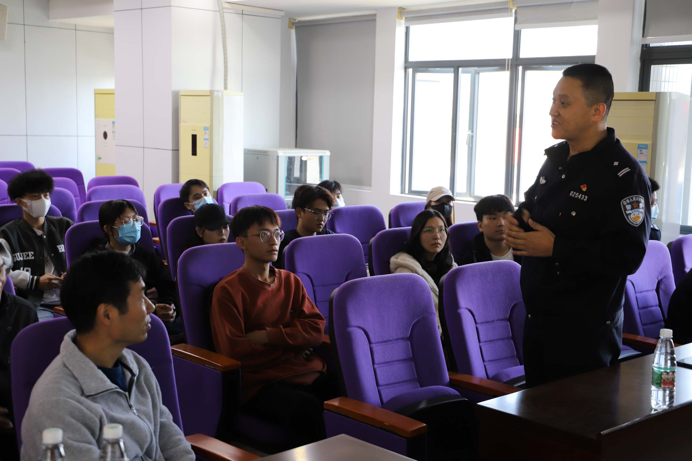 成立大会后,官洲派出所警官开展防诈骗专题讲座。工商管理学院学生100%安装了国家反诈中心APP,接下来将举办以“防诈骗”为主题的团日活动和班会,巩固和加强每一位同学的防诈骗意识。各班防诈骗宣传员也会协助警方,积极动员班级同学群策群力,帮助同学构建反诈骗的知识体系,做到警民携手共同建设和谐校园。