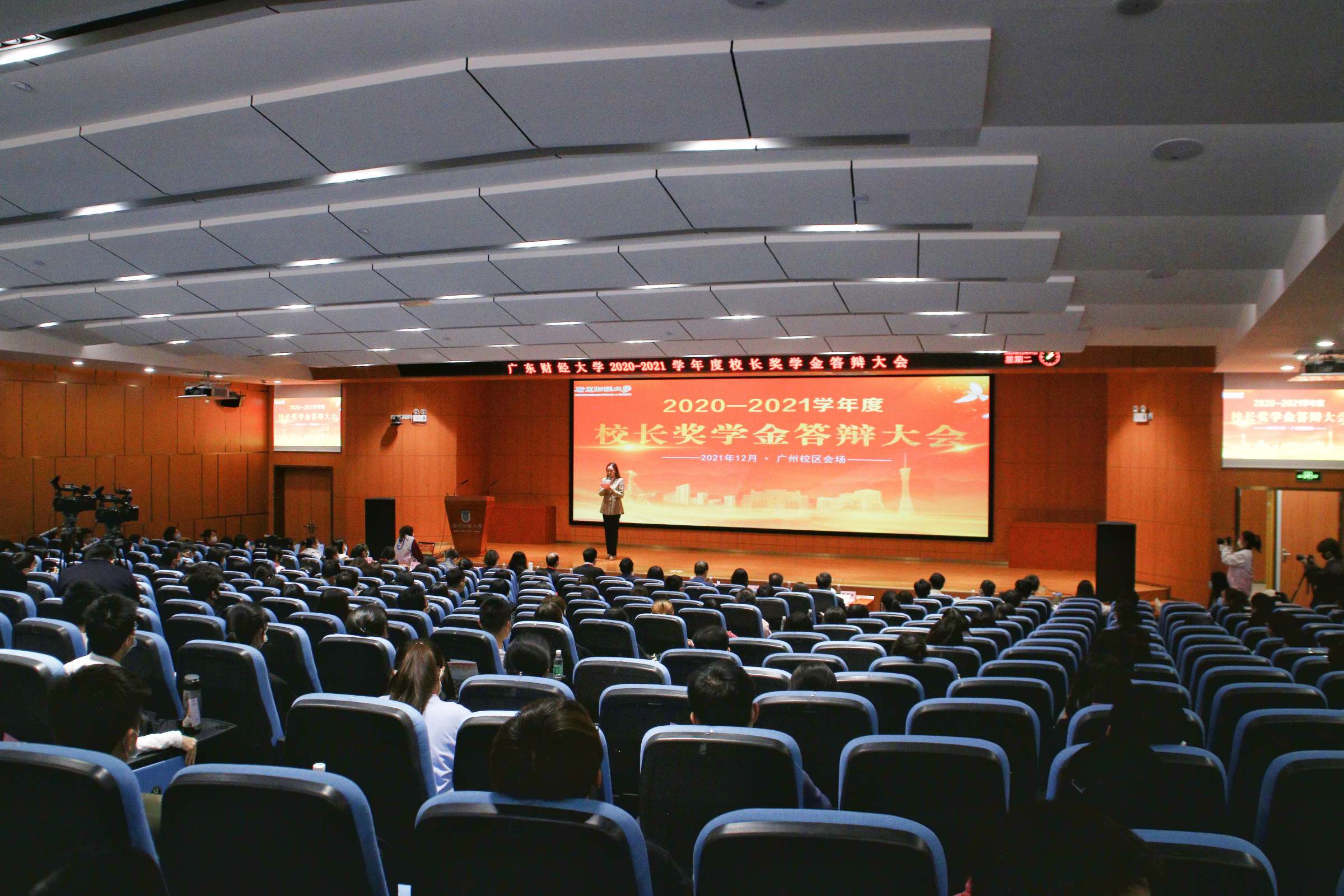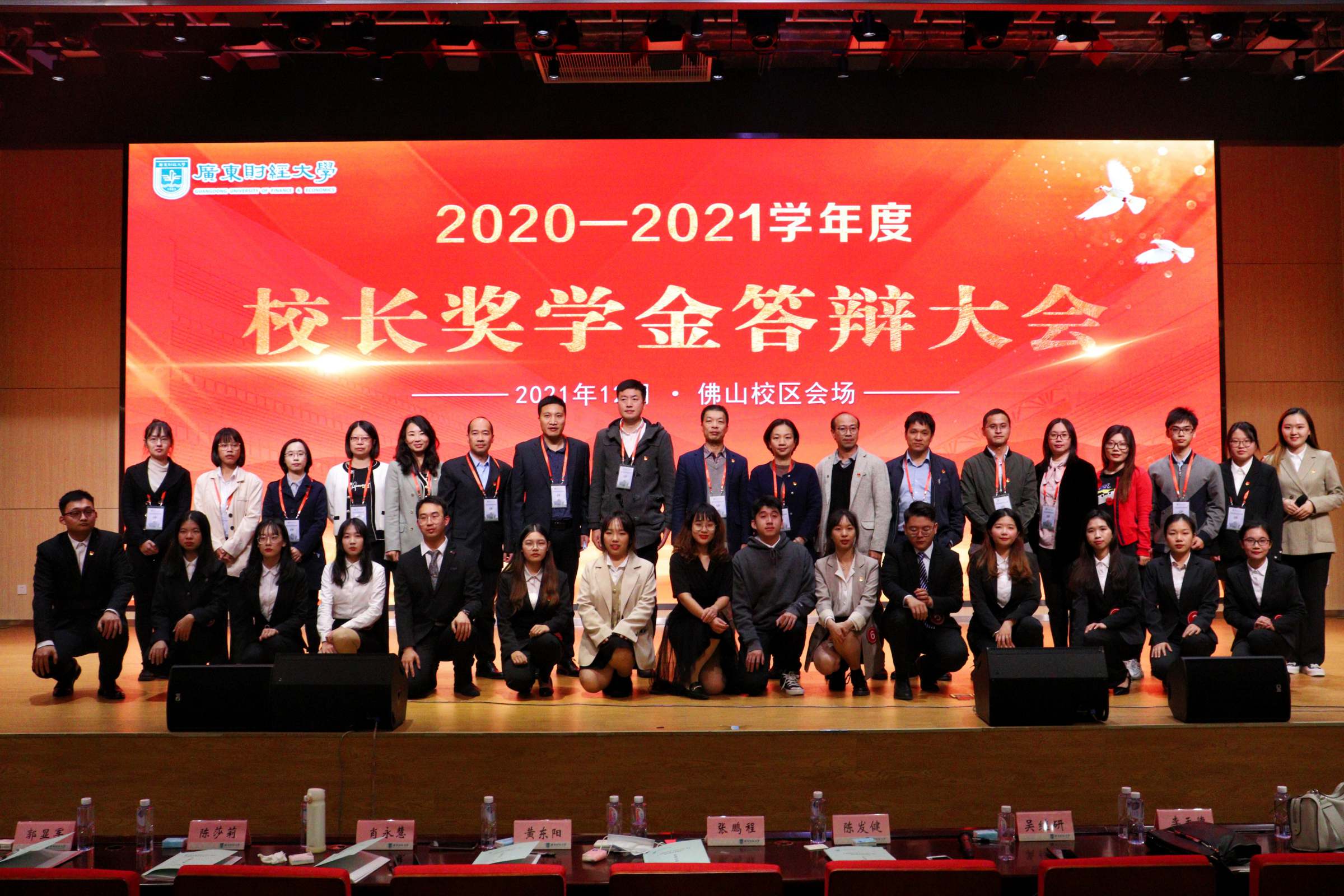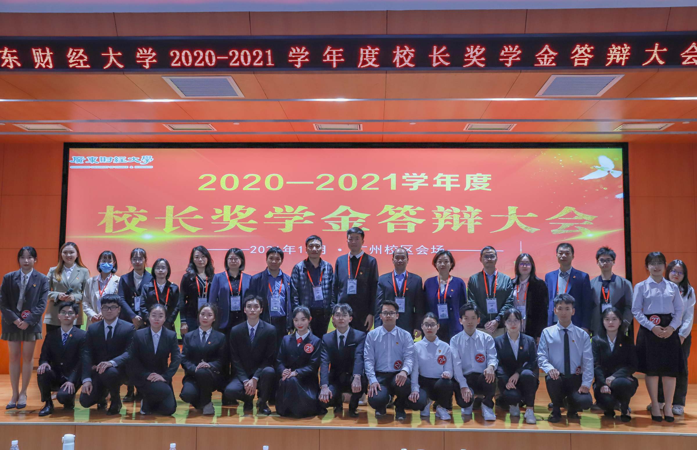 12月6日、7日,广东财经大学2020-2021学年度校长奖学金答辩大会先后在佛山校区、广州校区举办。校长于海峰、副校长陈国栋,以及由职能部门领导、学生工作负责人、教师、辅导员、学生代表组成的本科生奖学金校级评委会委员,两校区学生等参加。