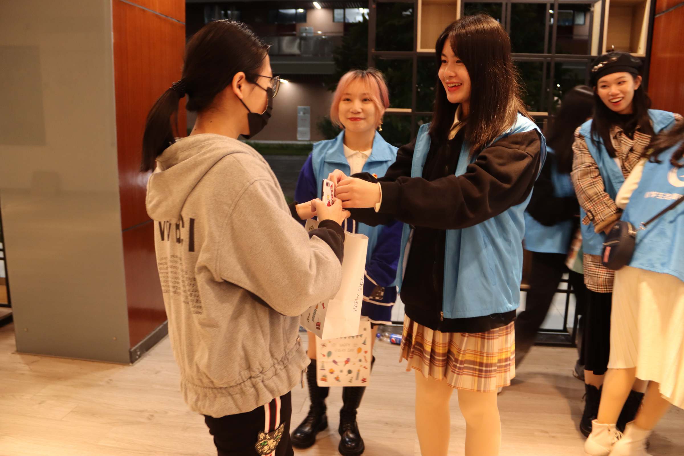 冬至当晚,校学生会工作人员带着寄托满满祝福的礼袋来到考研自习室,为他们送上温暖。为避免打扰正在复习的考研同学,工作人员在简单说明来意后将祝福礼袋一一送到在座位上复习、在走廊上看书的同学手中,礼袋在人与人之间传递,心与心在这一刻相连,考研路虽艰,考研人却不是独自战斗,学校老师与同学都是考研学子最温暖的依靠。