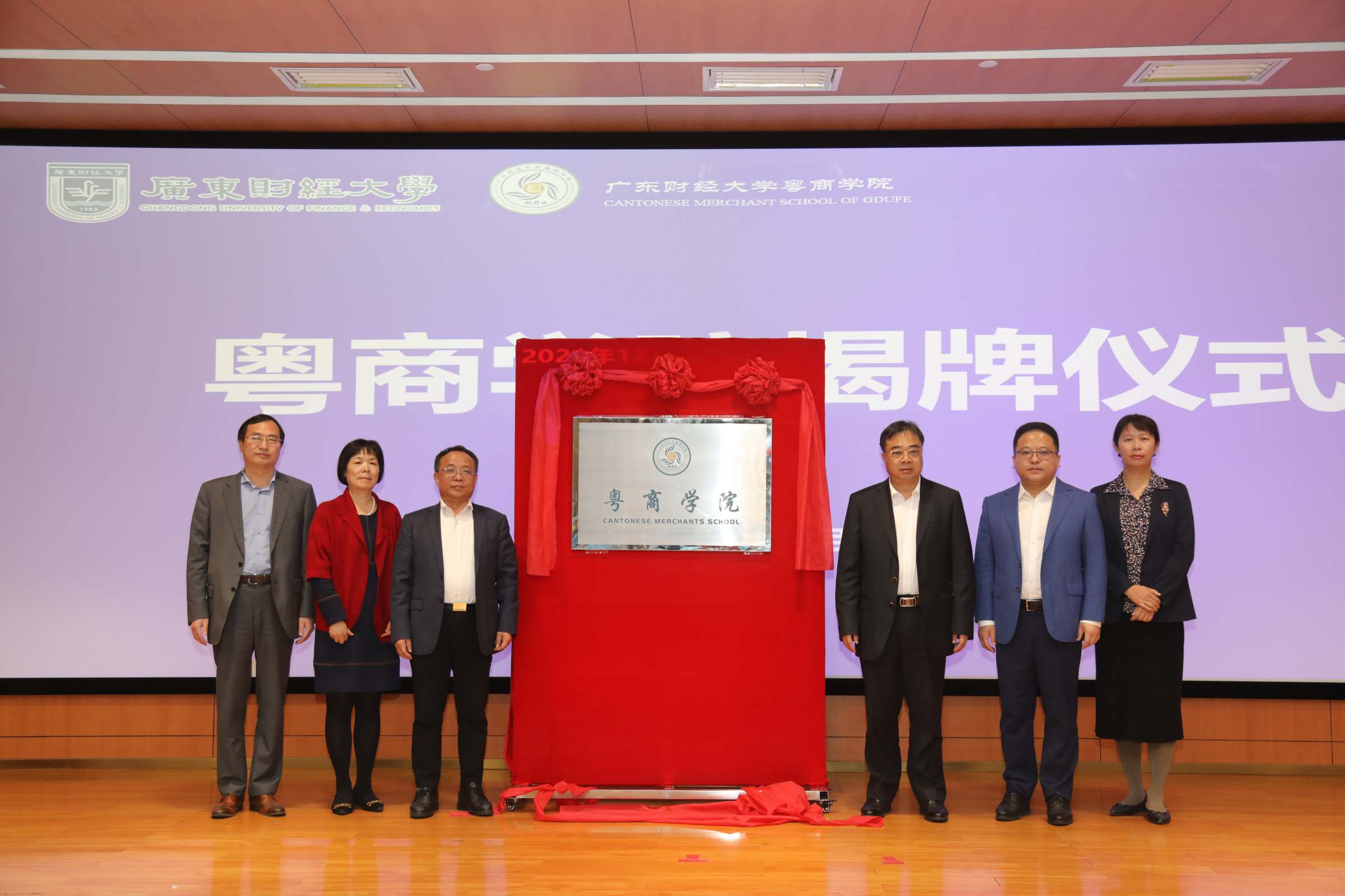 粤商学院也在众多粤商领袖企业家的见证下揭牌。郑贤操、于海峰、林涛、张艳梅、谢雄伟、顾文静共同为粤商学院揭牌。