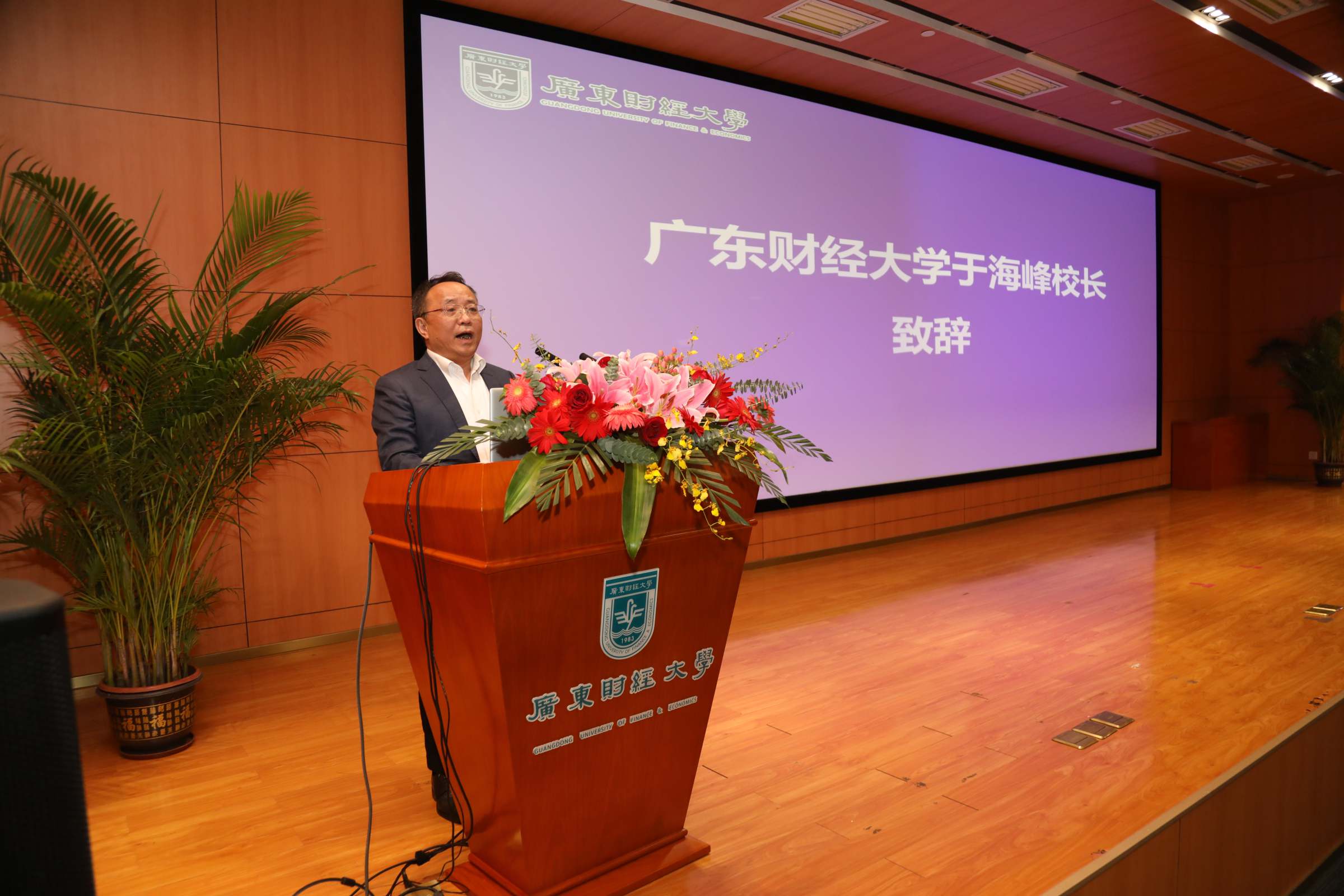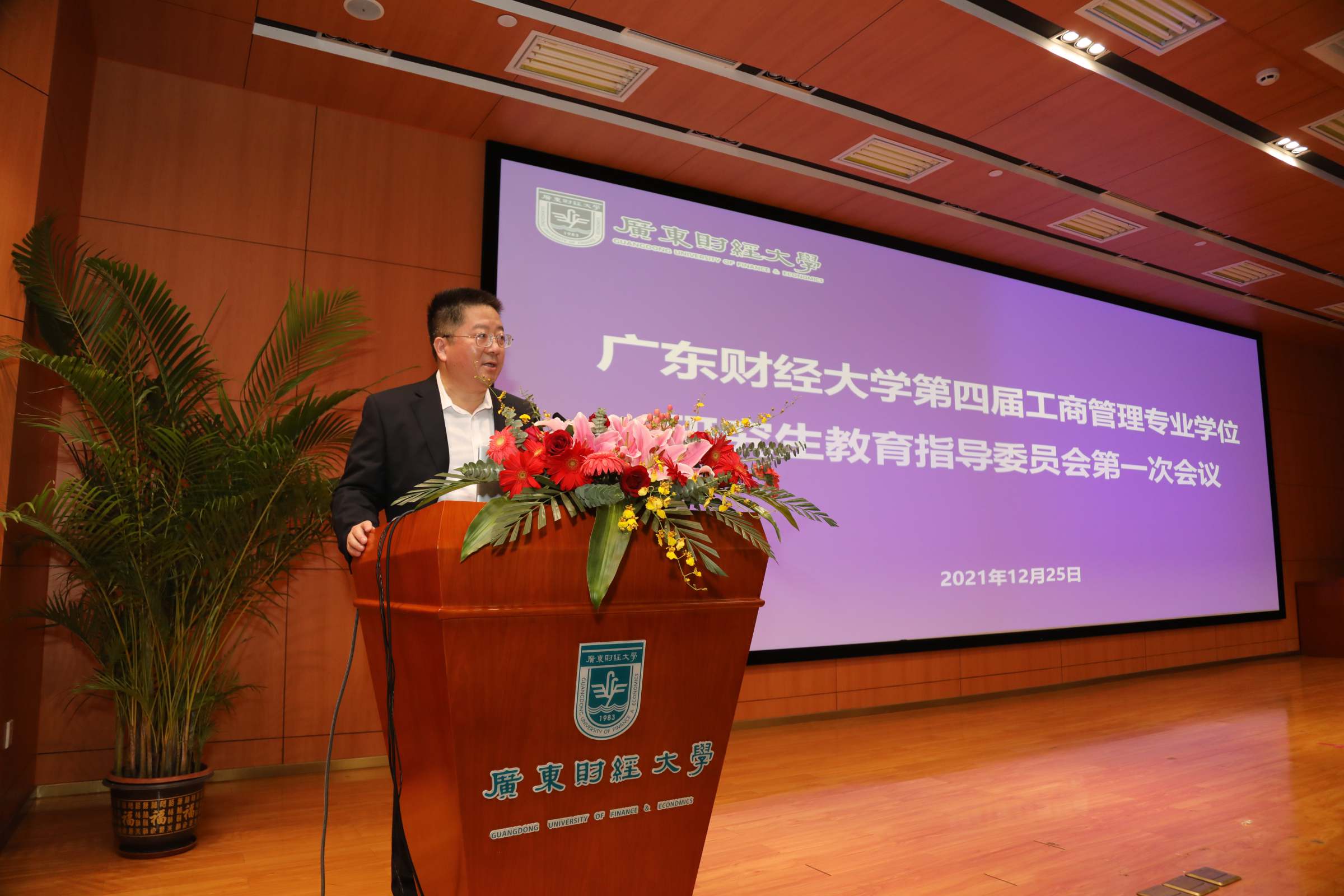 于海峰致辞。他说,当前学校全校师生正为实现在2035年建设成为湾区一流财经大学而努力奋斗。新的时代,希望新一届MBA教指委和各位委员在学校MBA教育的顶层设计、发展战略、产教融合、协同育人、品牌建设等方面整合资源、凝聚力量、创新举措、协同发展,共创广东财经大学MBA教育的美好明天。