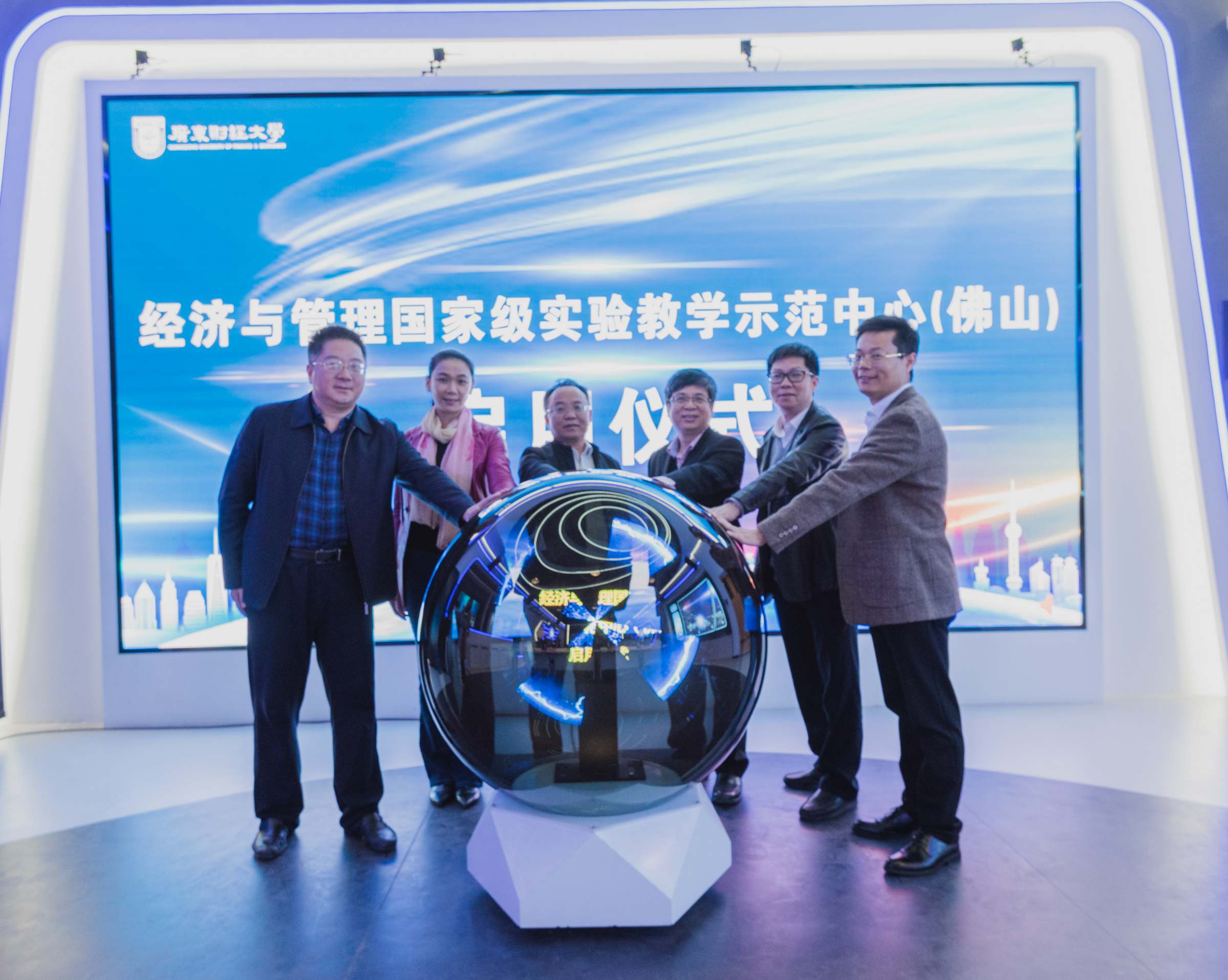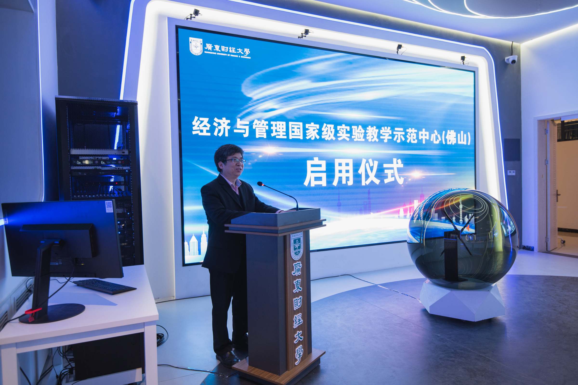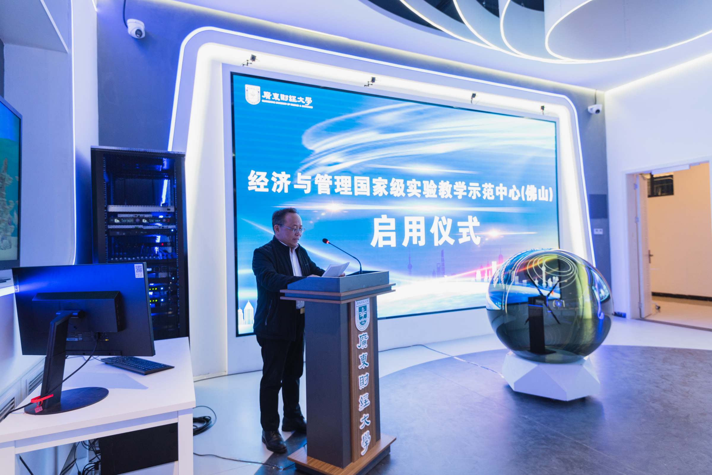 12月24日上午,我校在佛山校区同心楼南楼举行经济与管理国家级实验教学示范中心(佛山)启用仪式。校长于海峰、副校长丁友刚,佛山教育局调研员李忠、主任科员薛新坡,三水教育局副局长罗嘉幸,佛山校区管委会、经济与管理国家级实验教学示范中心、共建办、教务处、网络信息与教育技术中心、国际商学院、湾区影视学院、智能财会学院、人力资源学院、人工智能与数字经济学院等相关部门负责人,施工单位负责人等共同出席启用仪式。丁友刚主持启用仪式。