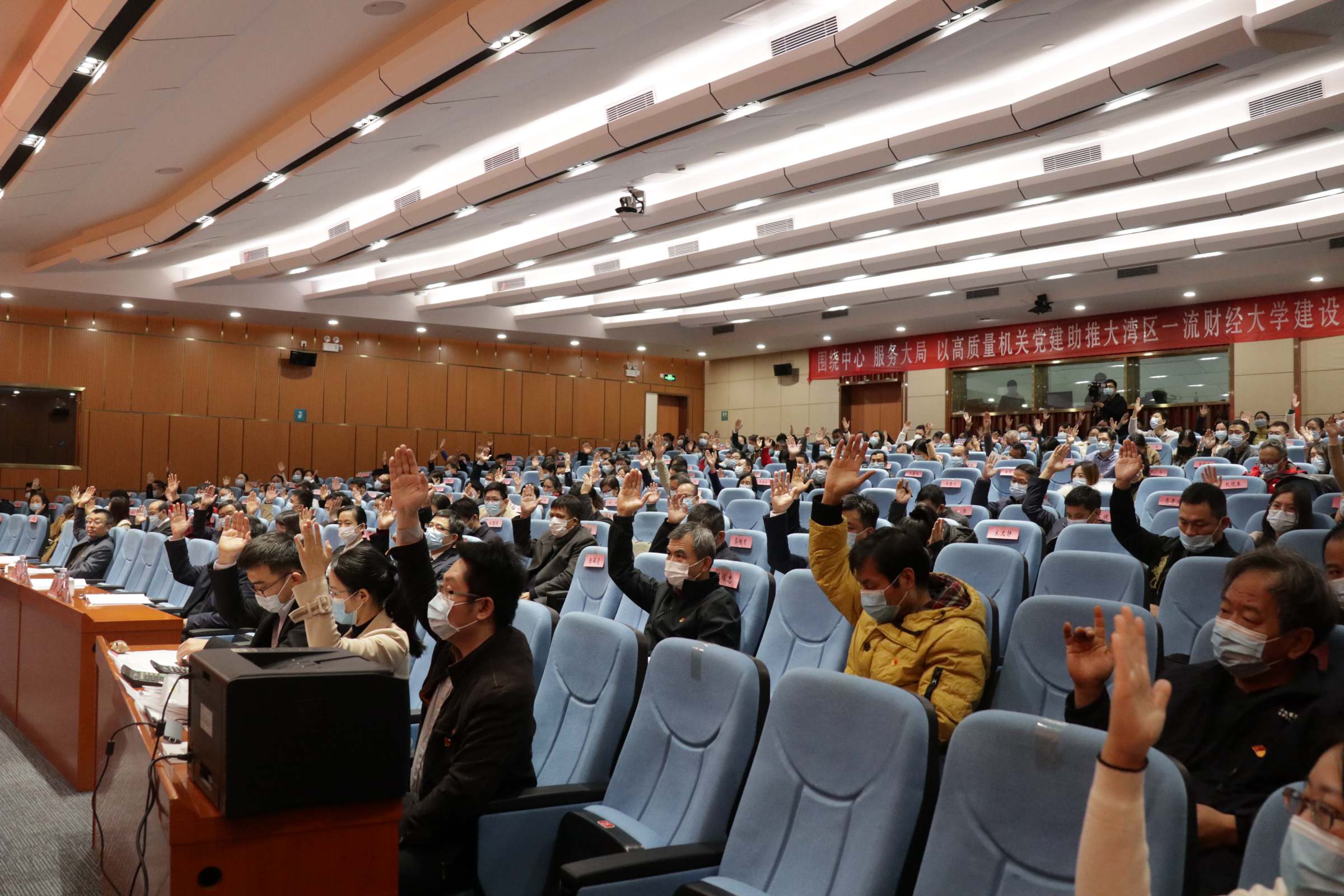 大会还审议通过了《中国共产党广东财经大学机关党员大会选举办法(草案)》和监票人建议人选。经充分酝酿,大会采用差额选举办法,以无记名投票方式选举产生朱戈、苏明华、张鹏程、陈丽清、罗玉燕、郑金栈、段丹(按姓氏笔划为序)7名委员。