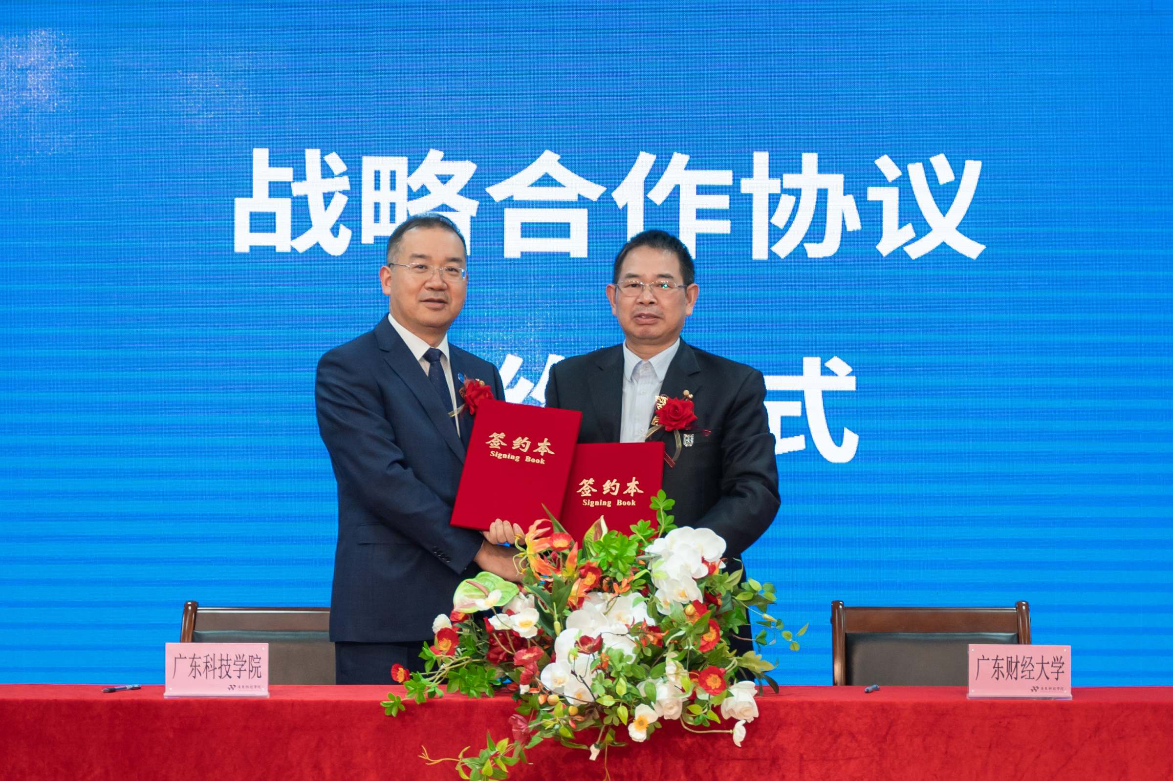 1月7日下午,我校与广东科技学院战略合作协议签约仪式在广东科技学院南城校区图书馆7楼学术报告厅举行。广东省教育厅有关部门负责人,东莞市科技局副局长钟靖平,我校校长于海峰、副校长邹新月,广东南博企业集团董事长刘东风,广东科技学院校长梁瑞雄、党委书记吴念香、常务副校长周二勇等校领导出席。我校校办、研究生院、社会合作处、校友办、会计学院、粤商学院、信息学院相关负责人,广东科技学院全体中层干部及教师代表近300人参加签约仪式。仪式由广东科技学院副校长吴立平主持。