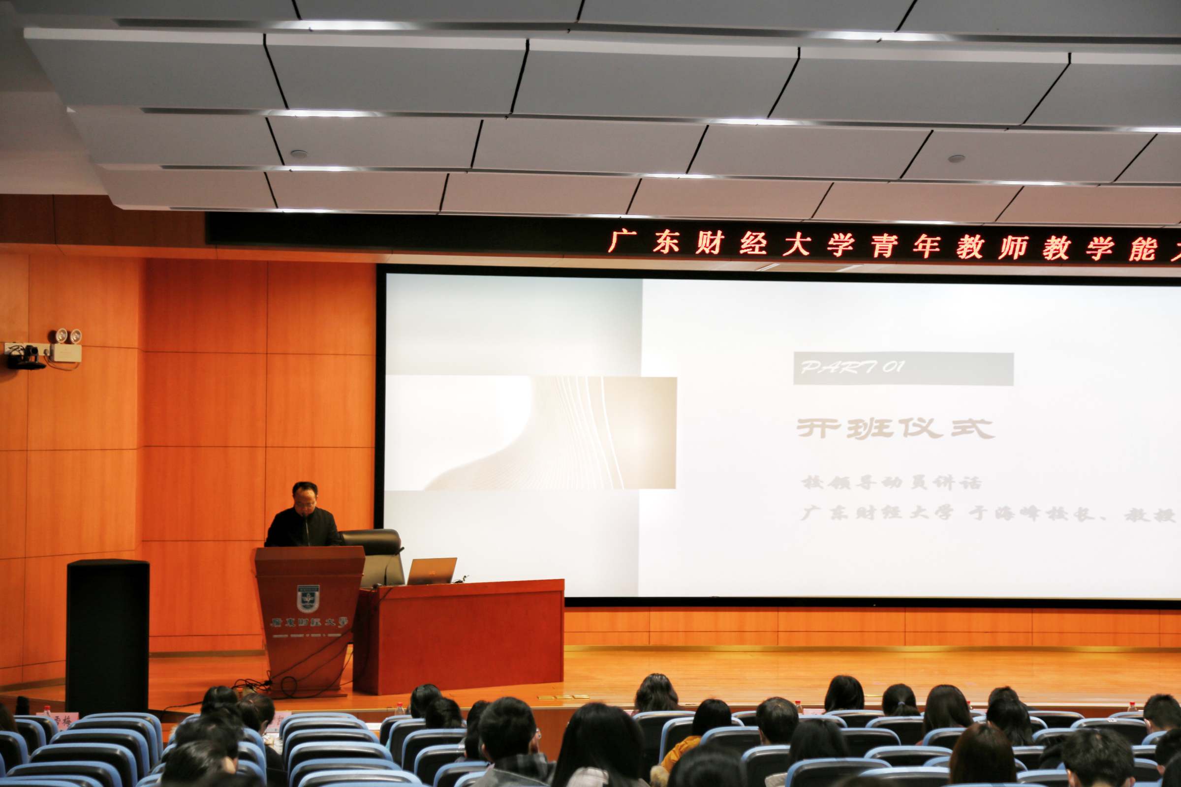 于海峰作动员报告。他向近年来奋战在教学、科研一线的青年教师表示衷心的感谢并送上新春的祝福。并从作为一名教师,要努力做到学高为师、德高为范,立责于心、履职于行,终身学习、学为人师,乐于奉献、团结协作四个方面,对参训的青年教师寄予殷殷期望。他强调:一是要认识到位,参训教师要从思想上真正重视起来,做到尊重主讲专家,虚心求教。二是要认真学习,既向主讲专家学习,又要互相学习,努力做到共同进步,共同提高。三是要深入思考,主动结合工作实际,不断提高自身综合素质和业务技能水平,积极探索新思路、构建新模式、开拓新方法,不断提升教育教学质量。四是要敢于创新,思考如何树立崭新的教育观念,提升创新素养,增强教育创新能力。