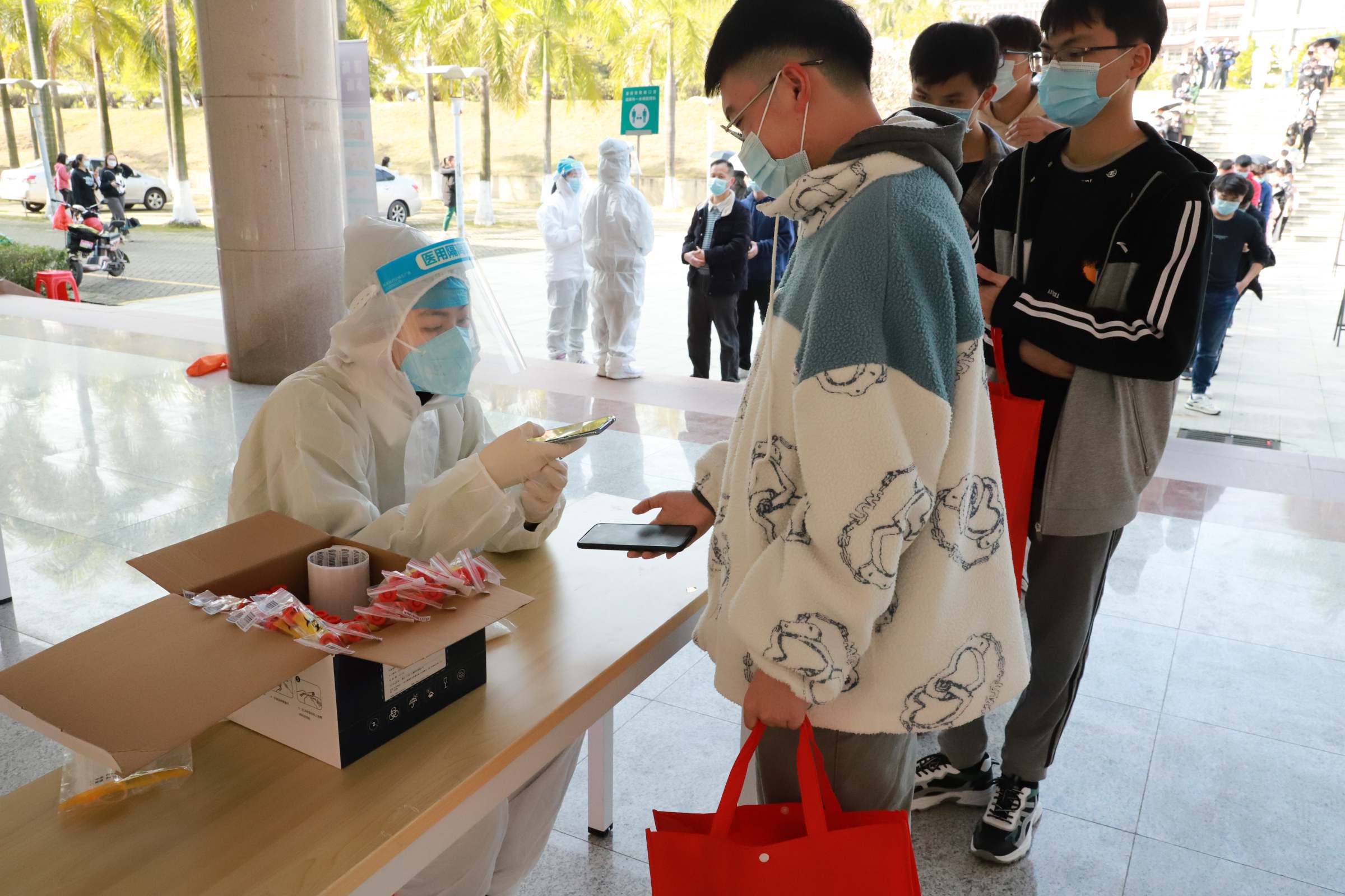 为织密筑牢校园疫情安全防线,扩大核酸检测排查范围,坚决贯彻“外防输入、内防反弹”总策略和“动态清零”总方针,根据校党委统一部署和学校2022年春季学期开学返校疫情防控工作安排,学校两校区于2月24——27日同时组织开展2022年春季学期返校师生全员核酸检测工作,根据学生返校时间安排,两校区分别联合属地疾控部门分批次、分时段有序为返校师生员工免费提供核酸检测。据统计,两校区共计 25720名师生员工接受了核酸检测,计划给本周末返校学生3000人再继续安排核酸检测。