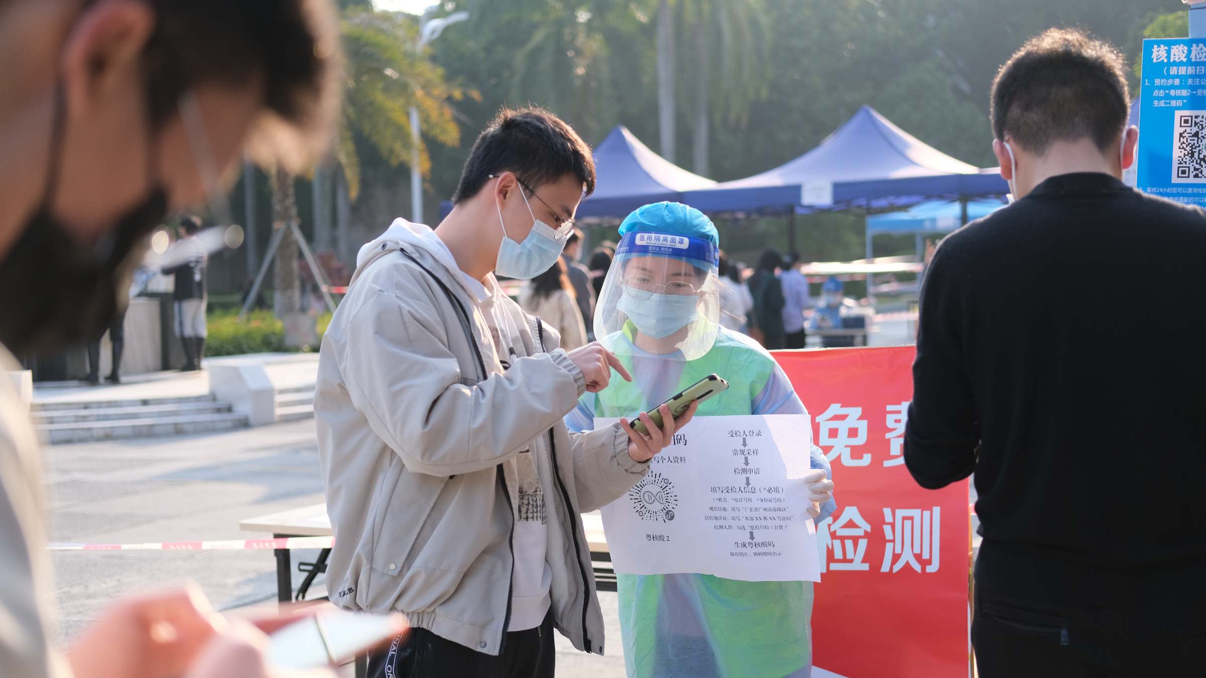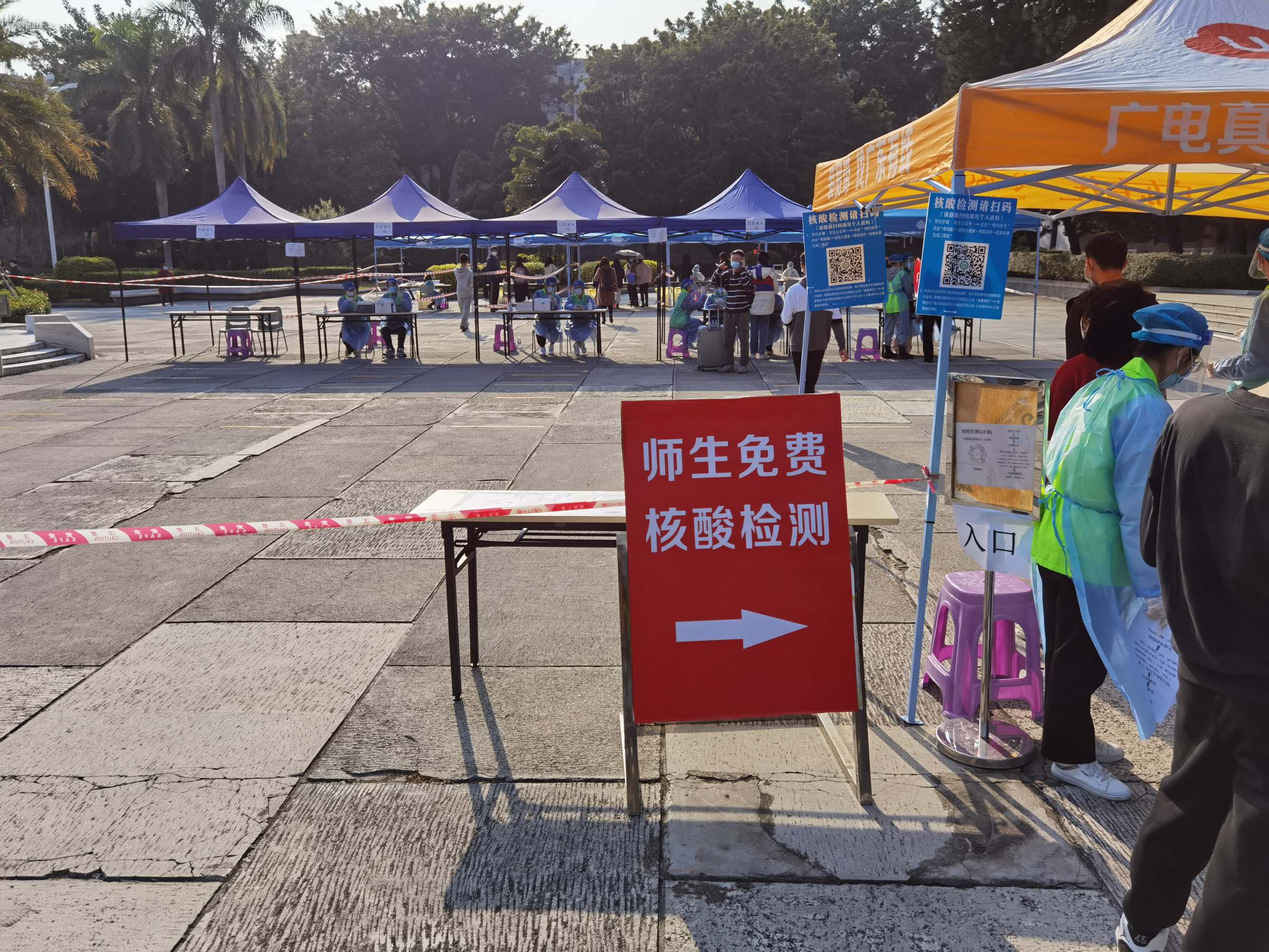 按照学校疫情防控领导小组的统一部署,疫情防控专项工作组相互配合,各司其职;医护人员专业负责、志愿者们耐心指引、师生员工积极配合,现场秩序井然,检测工作高效有序。同时,根据疫情防控需要,两校区严把“校门关”,对入校人员严格落实入校身份核验、体温检测、健康码、行程卡、48小时内核酸检测阴性结果查验等防疫规定,并在校门报到点设置了入校前洗手消毒和更换新口罩等前置环节。