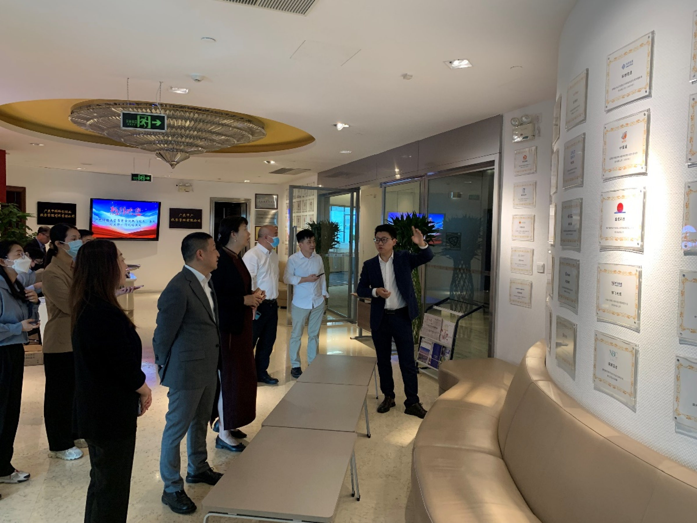 在参观公司的工作环境后,双方在公司会议室座谈交流。会上,郑强简要介绍了公司投资理念,顾文静对此次调研目的做了简要说明。在观看中广投资十年发展史的宣传片后,谭波对公司深耕大湾区发展历程和主要业务情况做了详细介绍。随后,双方在粤商案例开发、研究平台创新、粤商私募投资专题培训、课外实践教学、创业就业指导等方面专题进行座谈。双方对未来校企合作表示了殷切的期望,希望充分发挥学院和企业各自的资源优势,凝聚双方力量,弘扬粤商文化,共同助力粤港澳大湾区的发展。