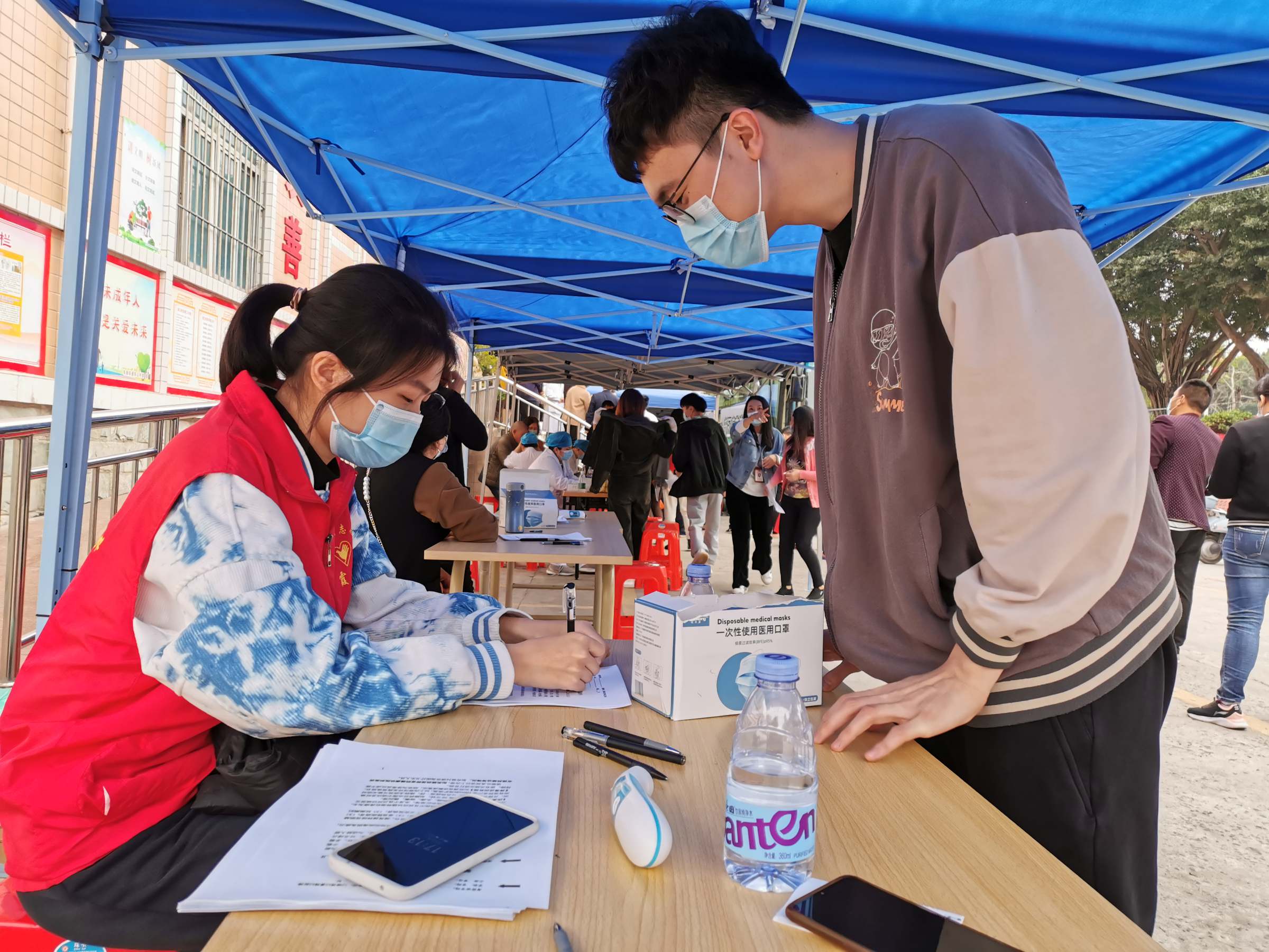 应用统计系18级的江婷婷,她参加了天河区妇幼保健院团支部的志愿防疫活动,在志愿活动中,她承担的角色是防疫志愿者,负责完成指引来院人员线上预约缴费,并填好粤核酸码的相关信息,协助医院有序地进行核酸检测服务;18级的魏鸿豪于2月10号参与有惠州市河南岸街道办团委组织的河南岸成语公园核酸检测活动,并承担核酸信息录入与人群引导工作;18级的钟毅彬在潼侨镇桥冠居委会,参与了走访宣传禁放禁卖烟花爆竹的志愿活动,与两委干部一同下队走访宣传,负责宣传以及派发禁放禁燃烟花爆竹的签名协议;20级的林淑琦在揭阳市揭西县棉湖点参加了由向阳支教团队举办的第八届向阳寒假志愿活动,活动内容主要分为义卖春联和图书募捐。