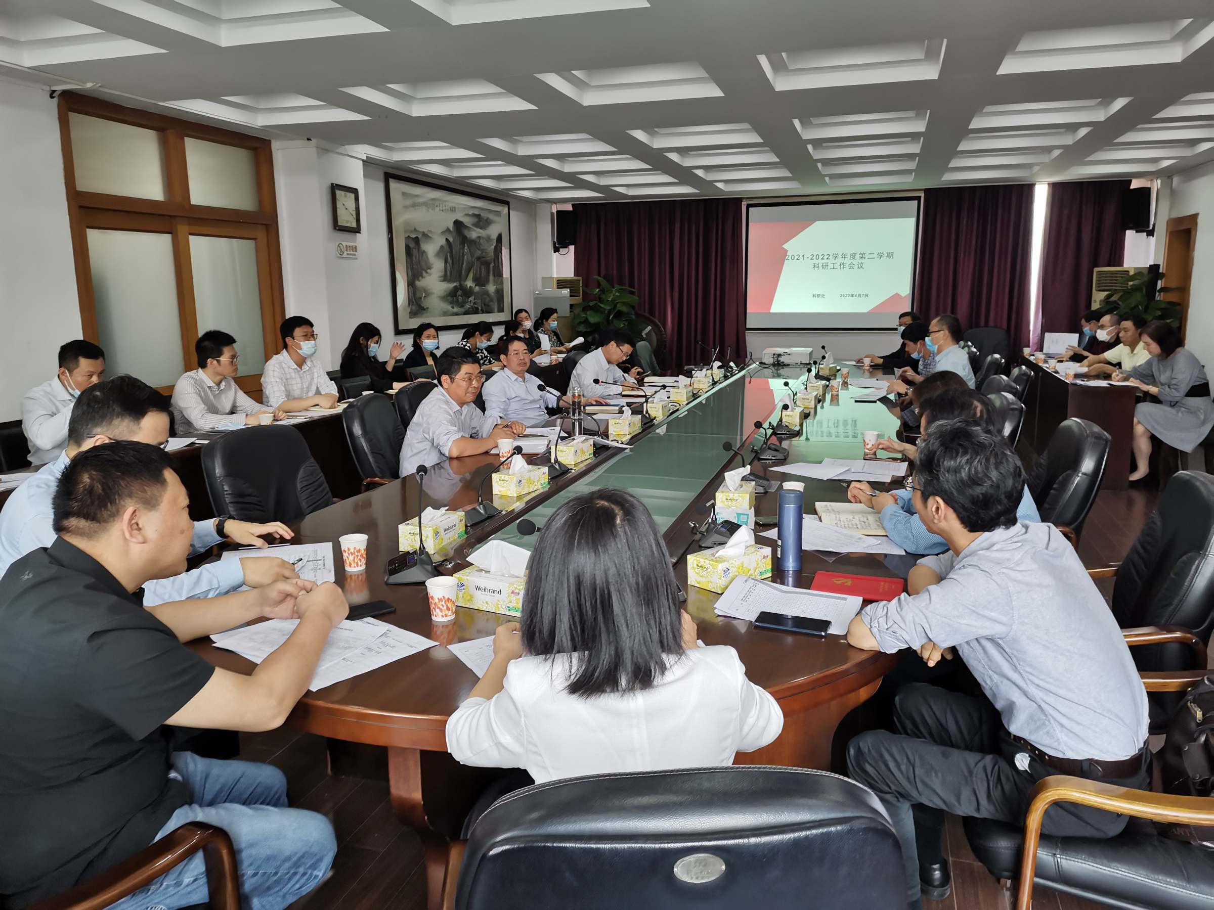 4月7日上午,2021-2022学年第二学期科研工作会议在行政楼第一会议室举行。副校长邹新月主持会议,各学院科研工作负责人、实体科研机构负责人,科研处全体人员参加会议。