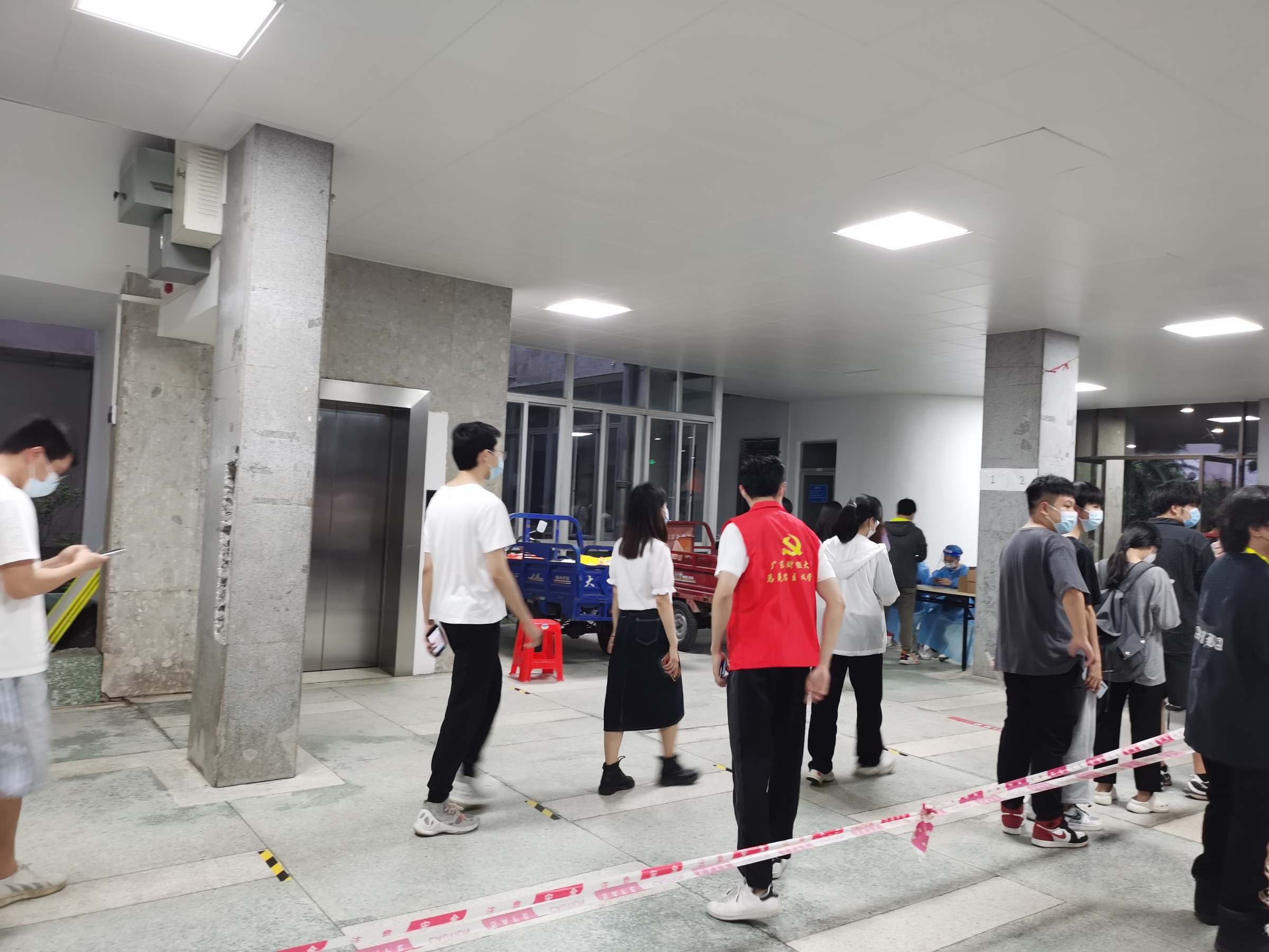本次检测,防控办会同后勤与医疗保障组、安全保卫组、学生事务组、教工事务组、宣传教育组等工作组,严格执行指引要求,落实学校大规模核酸检测方案,就场地布置、物资准备、检测流程、路线规划、人员配备等方面做了精心安排和充分准备。科学设置信息登记区、等候区和采样区,并根据现场核酸检测人数及时动态调整,认真落实“一米线”要求,严格控制人员密度、避免人员聚集,确保核酸检测工作安全、高效、有序进行。