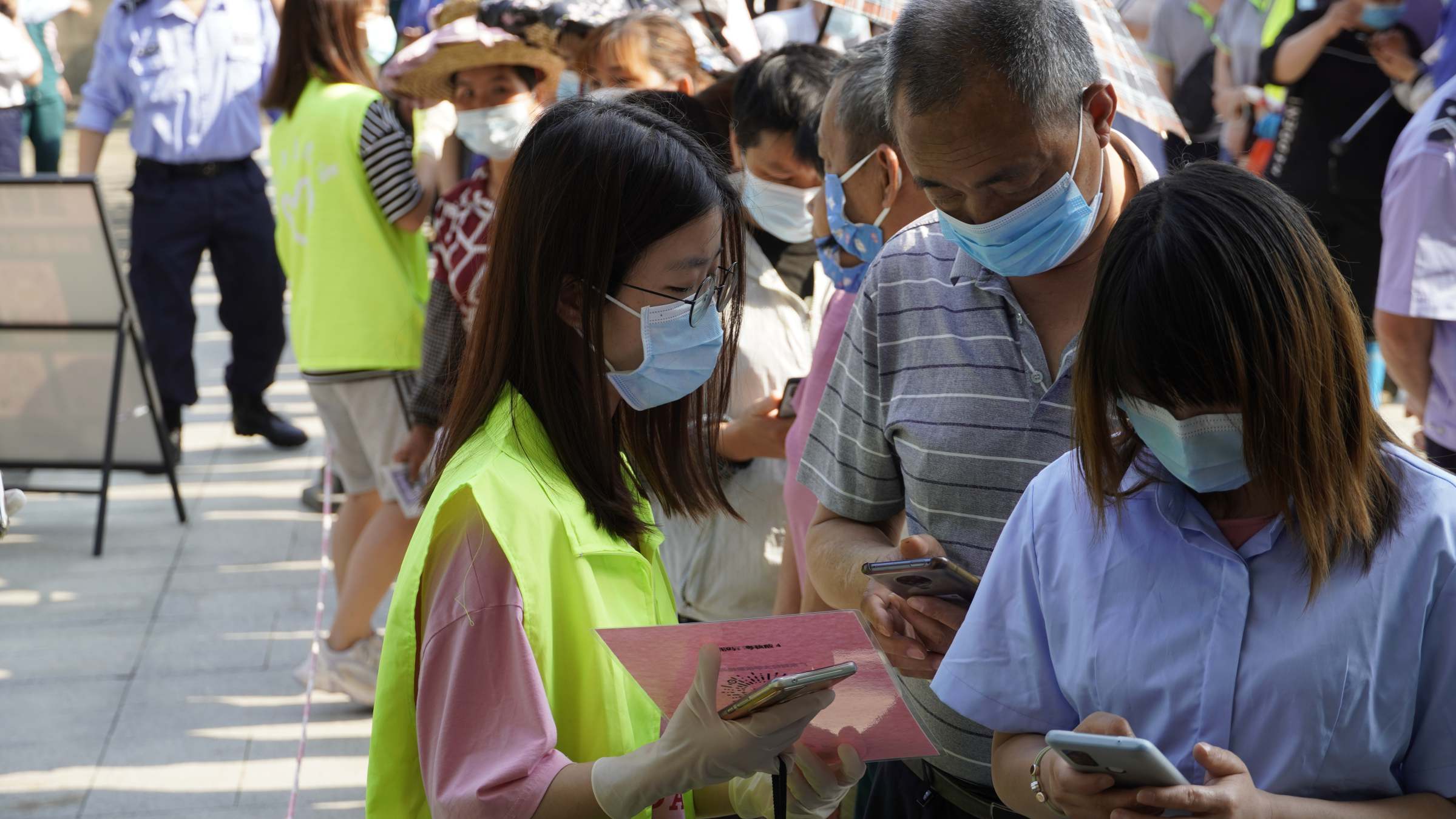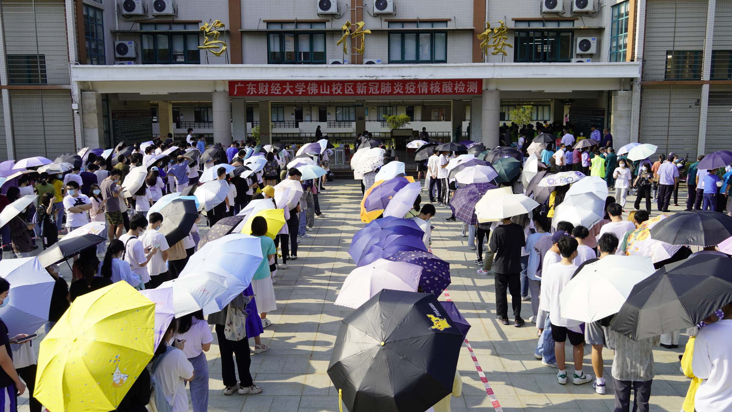 佛山校区在此次核酸检测工作中进一步优化完善了各项细节。比如,在核酸场地张贴醒目一米线标识,并在不同队列中拉上警戒线,通过现场志愿者和录音扩音器反复强调保持一米距离的要求,现场采用电子扫描登记方式助力核酸检测数据高效统计等。同时,增设教工专列,为教工提供更大便利,确保做到应检尽检,不漏一人。