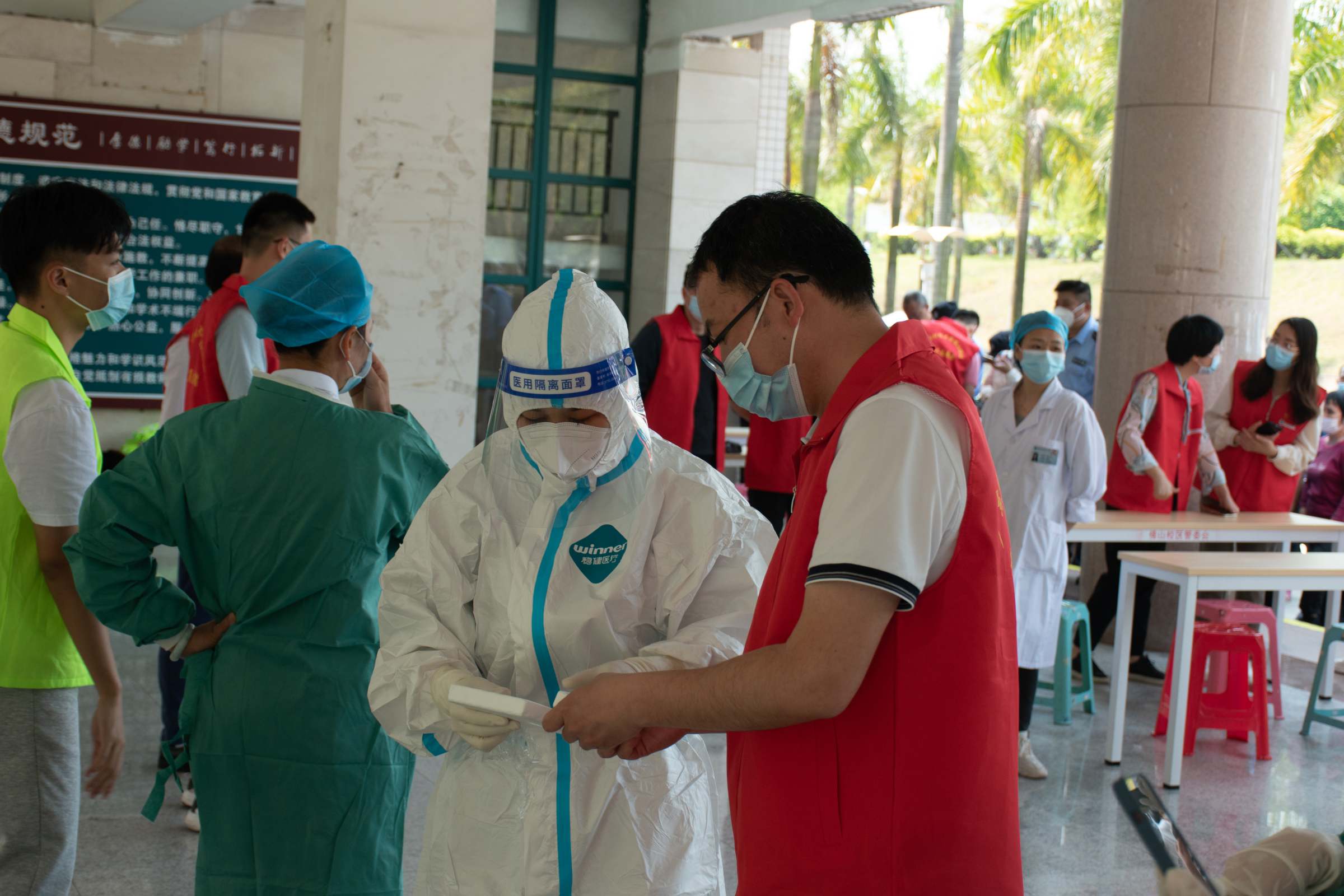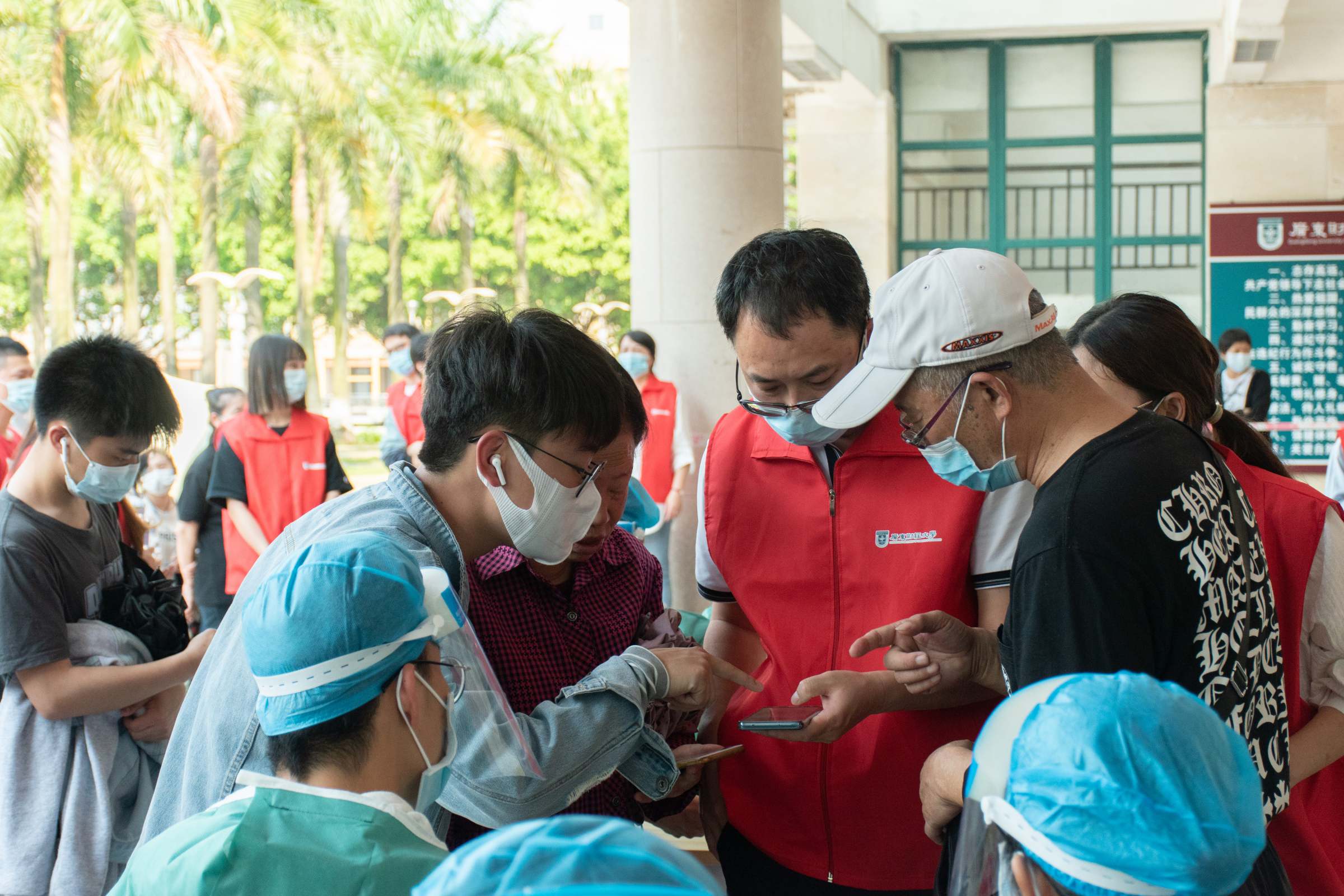 在核酸检测现场,随处可见志愿者忙碌的身影,教工志愿者和学生志愿者全情投入疫情防控工作,不怕酷热、不畏辛苦。佛山校区自招募疫情防控教工志愿者以来,已涌现了一批热情投入核酸检测、东西校门值守、外卖监管等工作的教工志愿者们,他们在履行好本职岗位的同时,加班加点为校区疫情防控贡献党员的智慧与力量。