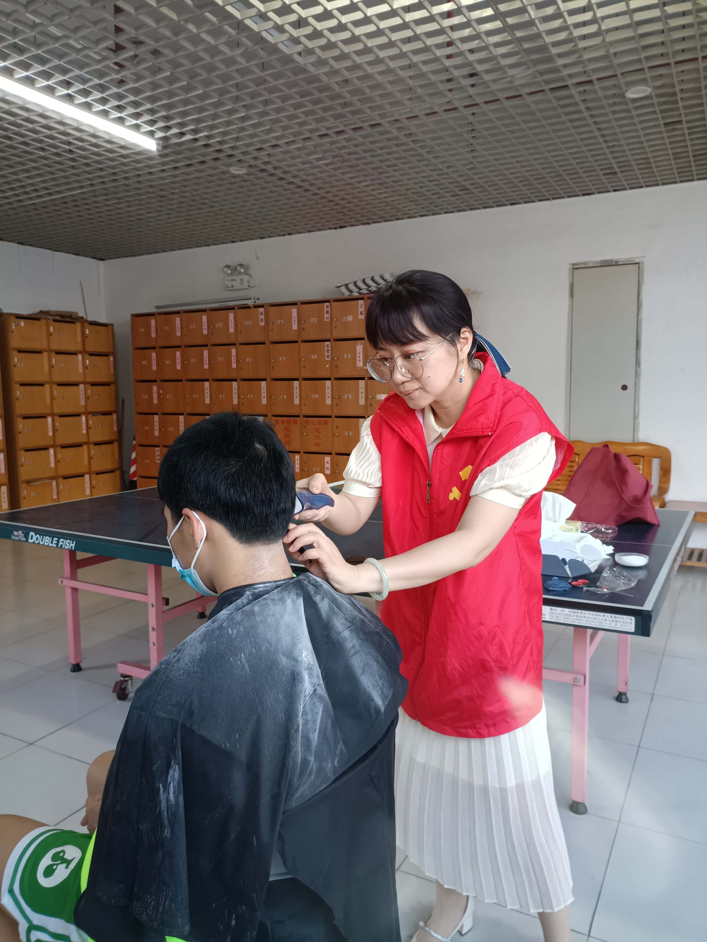 为防控疫情,统数学院加强了疫情防控管理工作。在严格落实外出审批时,学院发现学生外出理发不方便,为了解决学生的现实需求,学院党委副书记聂华丽自备工具,在北二楼为有需要的学生免费理发。