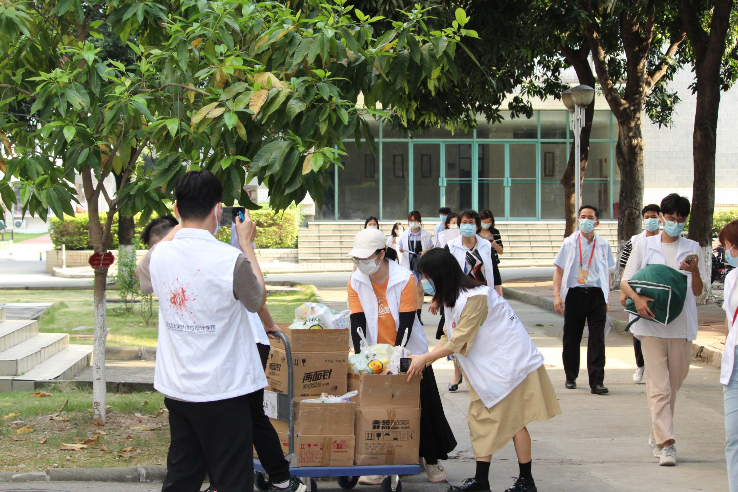 四月,广州新冠肺炎疫情警报频响。艺术与设计学院党委快速响应抗疫号召,扎实做好防疫工作,落实学校《广州校区校园封闭封控管理方案(第二版)的通知》精神,制定《艺术与设计学院防疫封控应急管理机制与工作流程》,联系校友企业广东双奇信息技术有限公司、柳州两面针股份有限公司慈善捐赠,筹备抗疫物资,为本院学生配送洗涤用品防疫包、口罩等防疫物资。