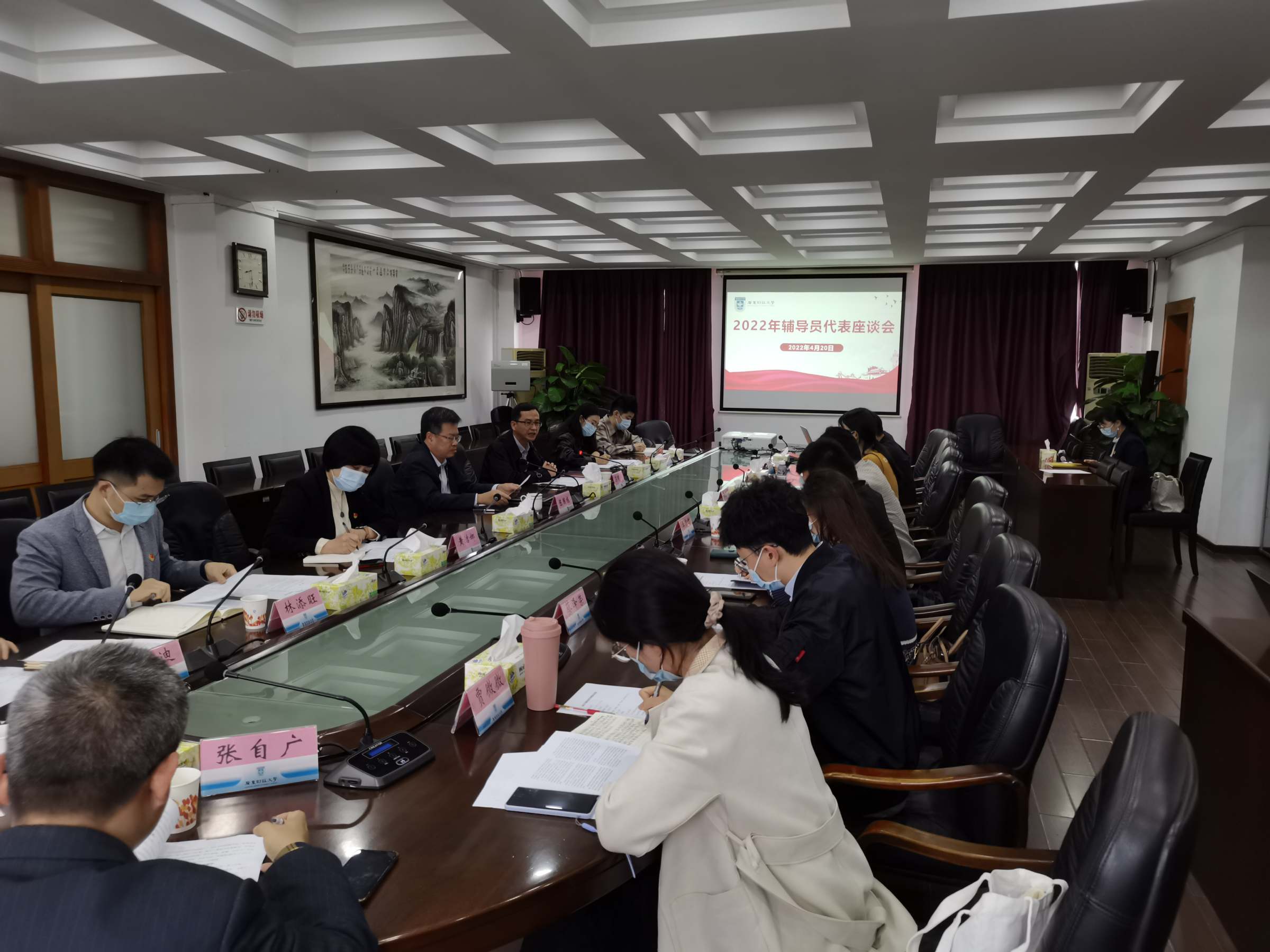 4月20日上午,学校在行政楼第一会议室召开本科生辅导员代表座谈会,副校长陈国栋,学工部部长苏明华、副部长黄洁娜,各学院本科生辅导员代表参加座谈会,会议由苏明华主持。