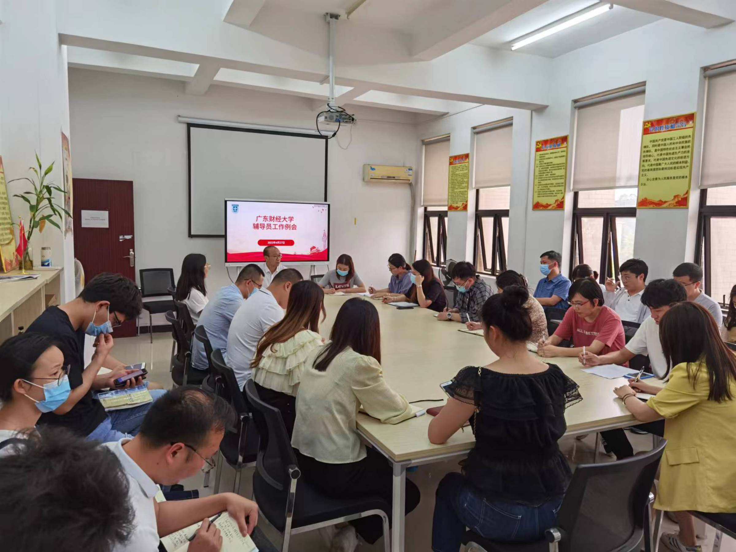 4月27日下午,学工部分别在广州校区北二631室和佛山校区厚德楼402室同步召开辅导员工作例会。学工部副部长黄洁娜、钟雄星和全体辅导员参加了会议,广州校区会议由黄洁娜主持,佛山校区会议由钟雄星主持。