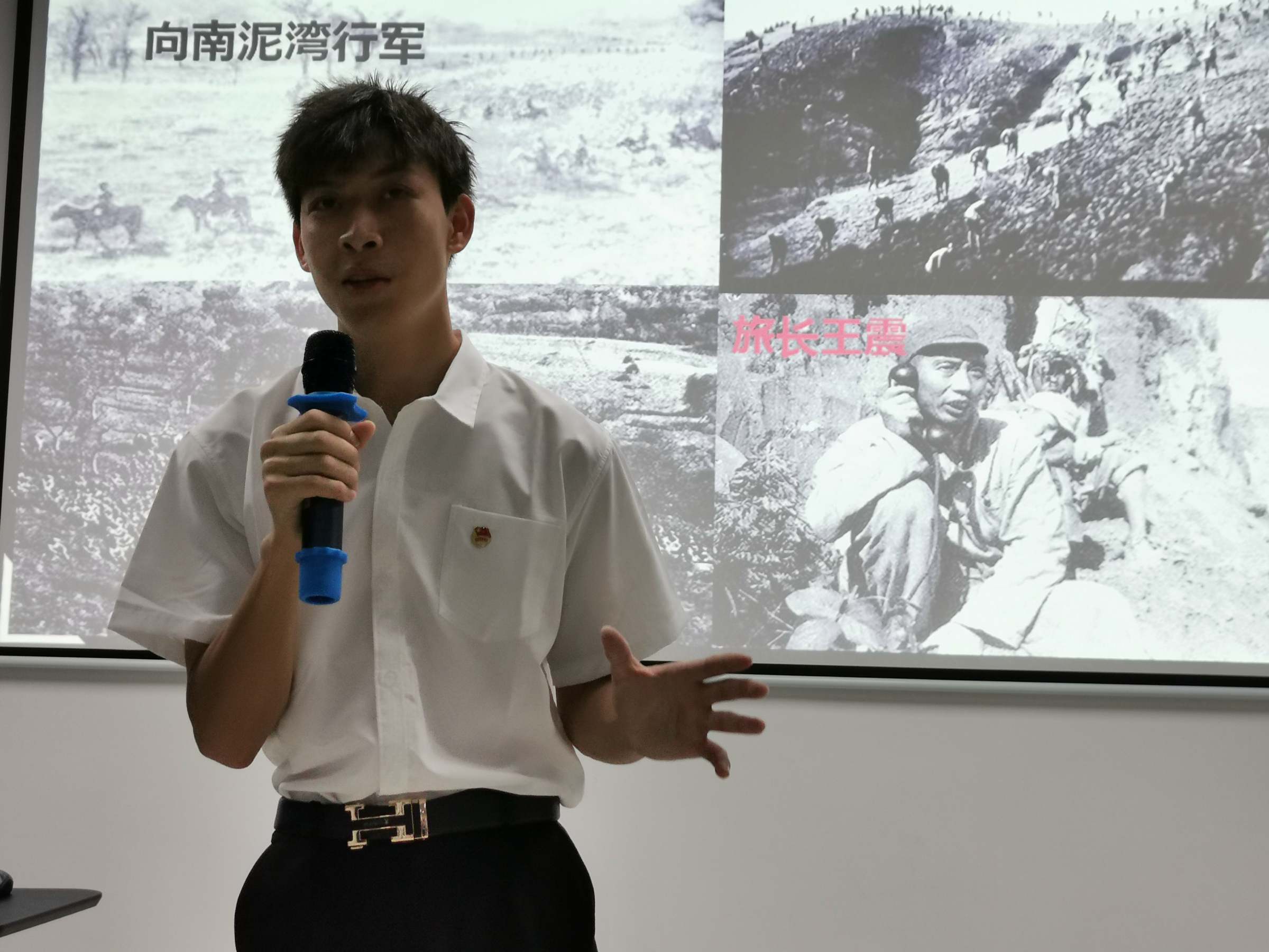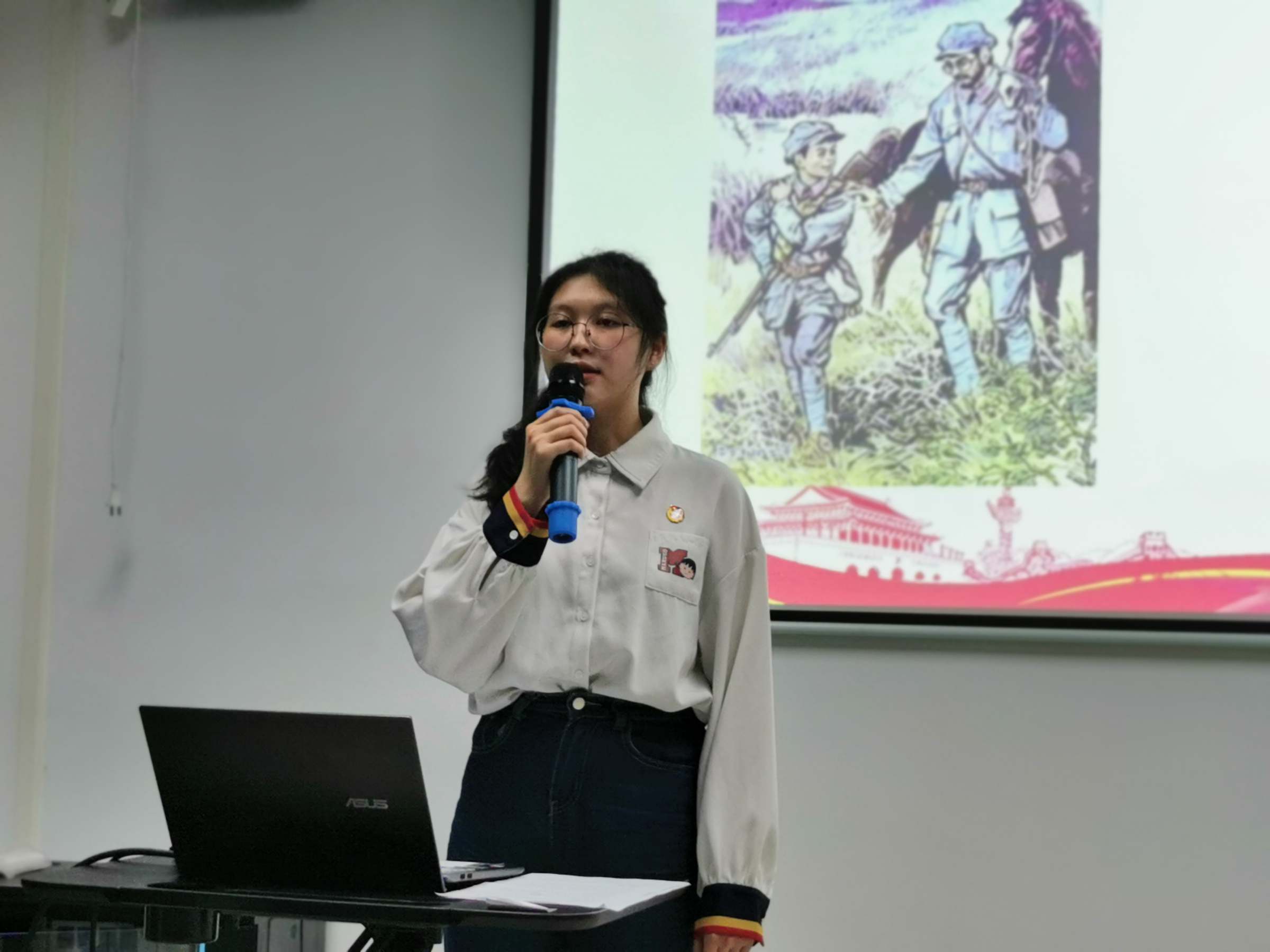 同学们在宣讲大赛中展示出不同的风格,精彩纷呈。2021级大数据管理与应用1班的温泽伟同学以一首耳熟能详的《南泥湾》革命歌曲,把大家带入陕北江南——南泥湾的故事,讲述了南泥湾如何从“烂泥湾”实现蜕变,让同学们了解到奋斗不止的南泥湾精神。2021级计算机科学与技术1班的贾元珩同学则借助一幅动态的作战地图,讲述了毛主席在“四渡赤水”的用兵如神,从最初的摆脱敌人围追堵截、挪移腾转的从容渡江,到大踏步前进的完美落幕。来自数据科学与大数据技术1班的高冬情同学讲述了长期战斗在隐蔽战线的英雄——沈安娜,14年的隐蔽战线生涯可谓波澜壮阔,一次次与死神擦肩而过,她仍在看不见的战线之上,坚守着最初的信仰。2021级数字经济1班叶悠悠同学则向大家讲述了一个大家非常熟悉的巾帼小英雄——刘胡兰的故事,在战乱年代,小小年纪的刘胡兰,冷静机智,与敌人斗智斗勇,在敌人威胁面前,她坚贞不屈,大义凛然。