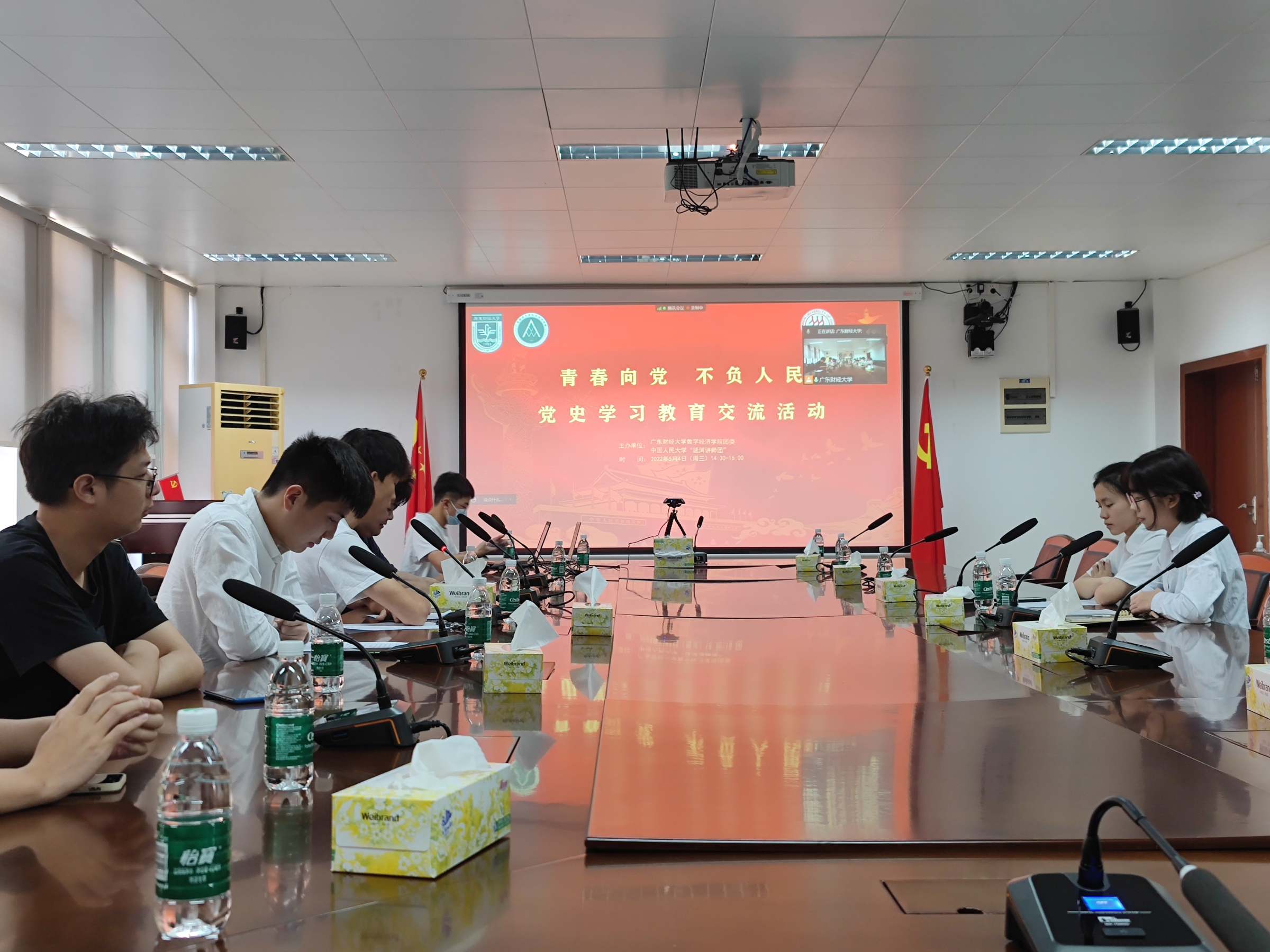5月4日下午,数字经济学院团委与中国人民大学“延河讲师团”联合开展“青春向党 不负人民”云端党史学习教育交流活动,深入学习习近平总书记考察中国人民大学重要讲话精神,共同交流青年的时代使命与担当。