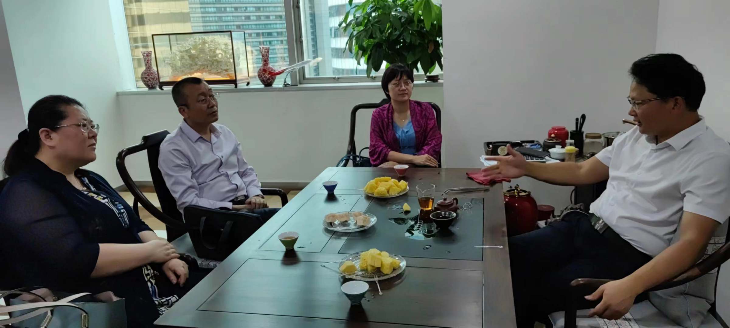陈树武一行同星鹏集团总裁朱晓明座谈交流。陈树武对星鹏集团一直以来对我校校友工作的大力支持表示感谢,肯定了星鹏集团对我校校友基金会成立做出的巨大贡献。希望学院充分利用学校的区位优势、学科优势以及广州星鹏集团的资源优势、技术优势、平台优势,实现资源互补、互利共赢。