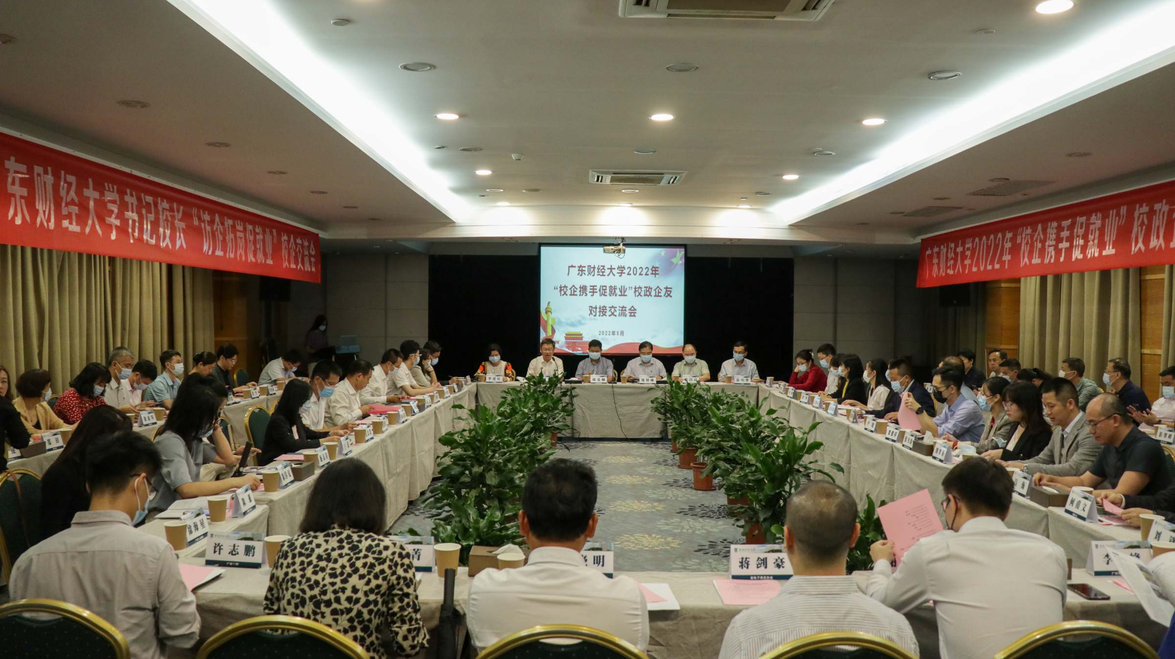 5月13日上午,广东财经大学2022年“校企携手促就业”校政企友对接交流会在广州校区举行,近40家用人单位负责人参加了活动。广东省教育厅二级巡视员邱克楠,广东省教育厅学生就业创业处副处长张昌应;我校党委书记郑贤操、校长于海峰、副校长陈国栋;广州市高校毕业生就业指导中心副主任李爱红,海珠区人才办主任彭刚,琶洲管委会郝杨;我校学工部、校友办、研工部、社会合作处以及各学院党政领导出席了会议及相关活动,会议由陈国栋主持。