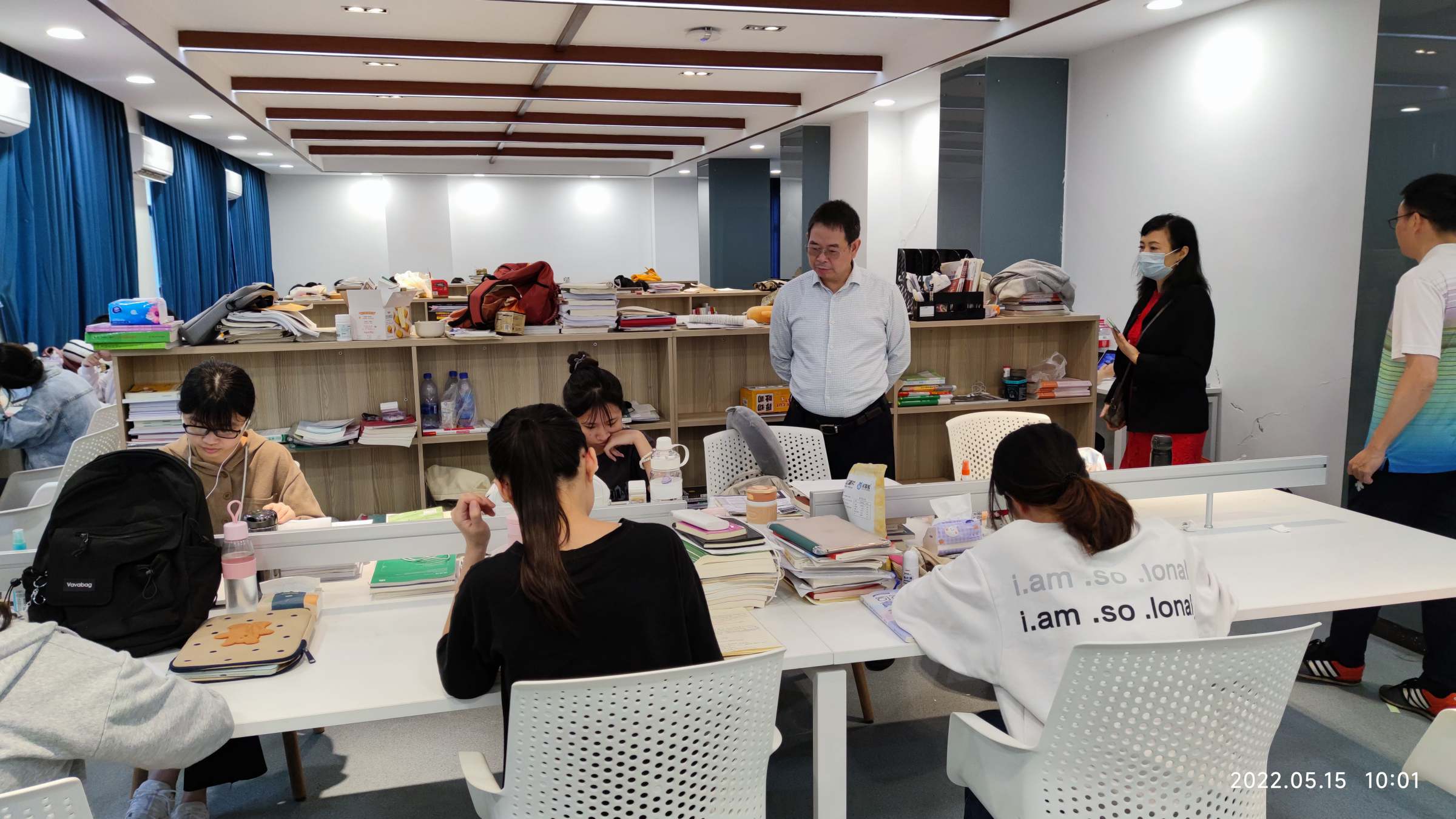 5月15日上午,副校长邹新月在佛山校区值班期间,慰问值班值守的师生们,走访了有为书院22栋园区,检查了同心楼实验室,佛山校区管委会后勤办主任周琪锋和湾区影视产业学院党委副书记路军奉陪同。