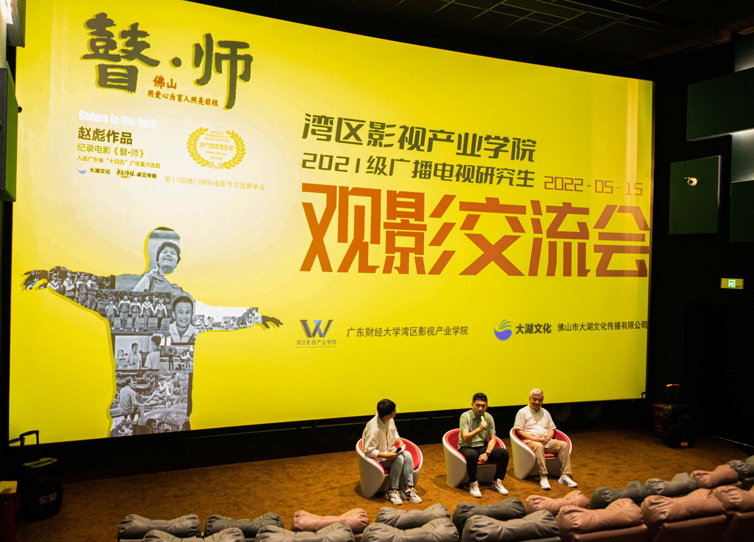2022年5月15日是第32个“全国助残日”。当天晚上,湾区影视产业学院邀请助残公益纪录电影《瞽·师》主创团队在三水中影米米影城举行专场观影交流会。湾区影视产业学院党委书记杨长春、副院长张琦,相关老师、学院全体研究生和本科生优秀代表参加交流。