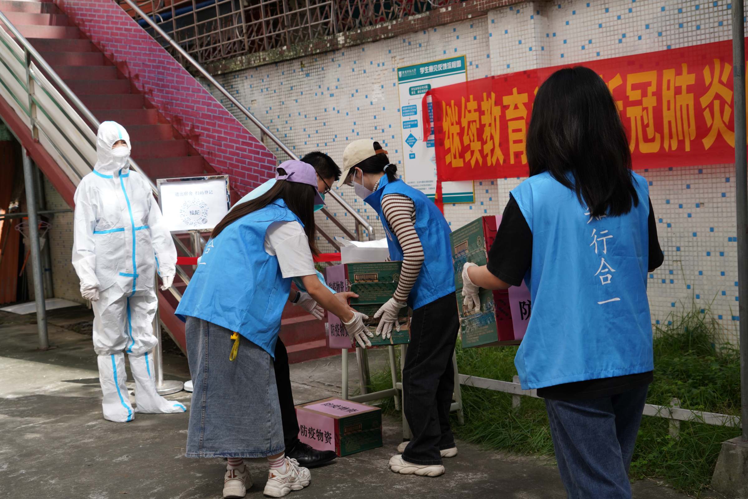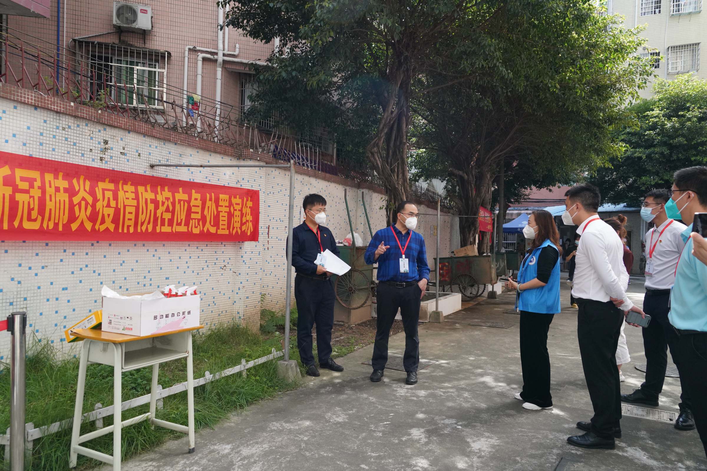 “接学校紧急通知,我院发现疑似新冠阳性学生,现对相关楼栋进行紧急封闭封控,立即启动应急响应!”一声号令,拉开了疫情防控应急演练序幕,对分布在五个片区共五栋学生宿舍进行紧急封闭封控。“学院疫情防控领导小组(片区长)—楼栋长—楼层长—宿舍长”的“全链条”“分层级”“网格化”应急工作体系迅速响应,综合协调、学生应急、安全保卫、后勤保障等专项工作组各司其职,演练了报告处置、宿舍楼封闭封控、涉疫人员处置、学生数据统计、封控物资运输等五个场景。实战演练中,工作人员及时赶到封控楼栋,迅速掌握并上报学生“在宿舍、在校园、已离校”等数据。