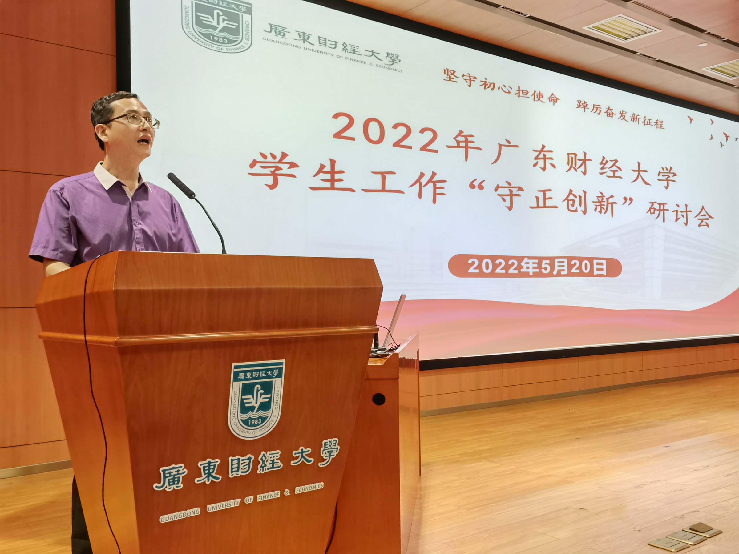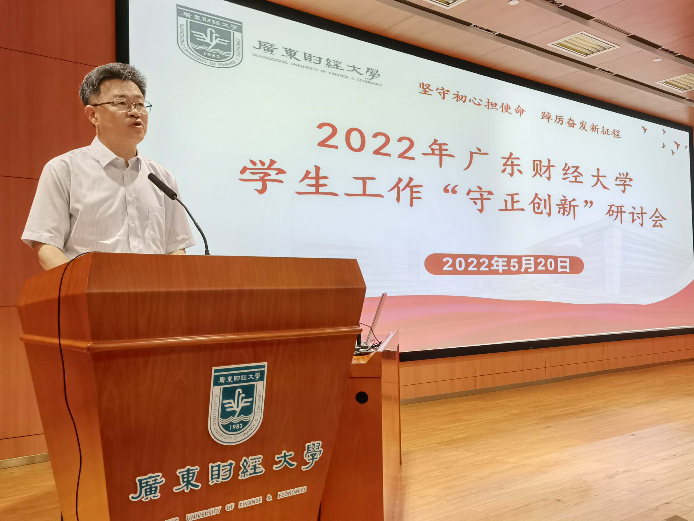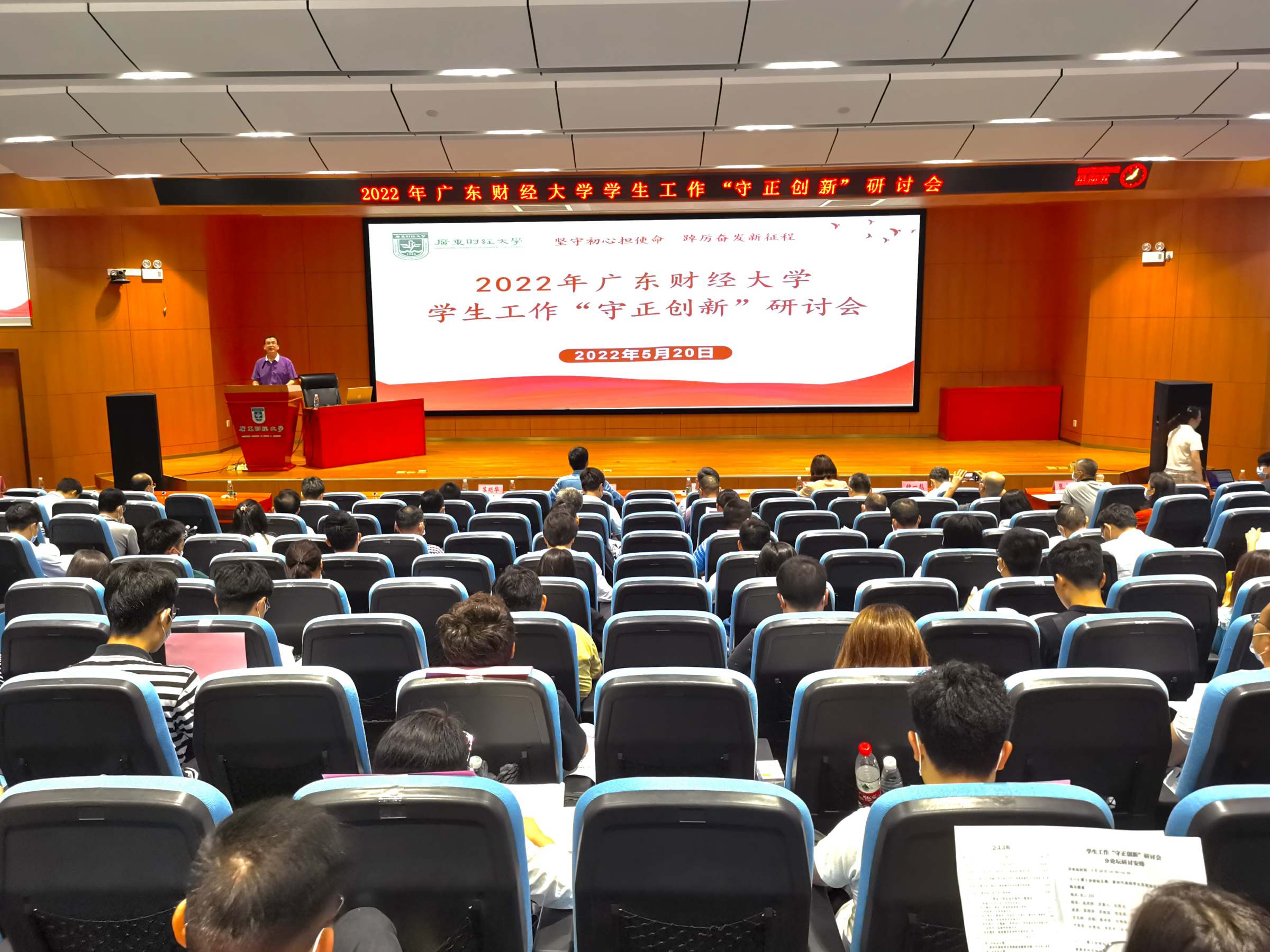 5月20日,我校在广州校区召开2022年学生工作“守正创新”研讨会。本次研讨会以“坚守初心担使命,踔厉奋发新征程”为主题,目的是引领全体学生工作队伍坚守为党育人、为国育才的初心使命,在守正上创新、在创新上发展,贯彻新发展理念、构建学生工作高质量发展新格局,以奋进的姿态、优异的成绩迎接党的二十大胜利召开。