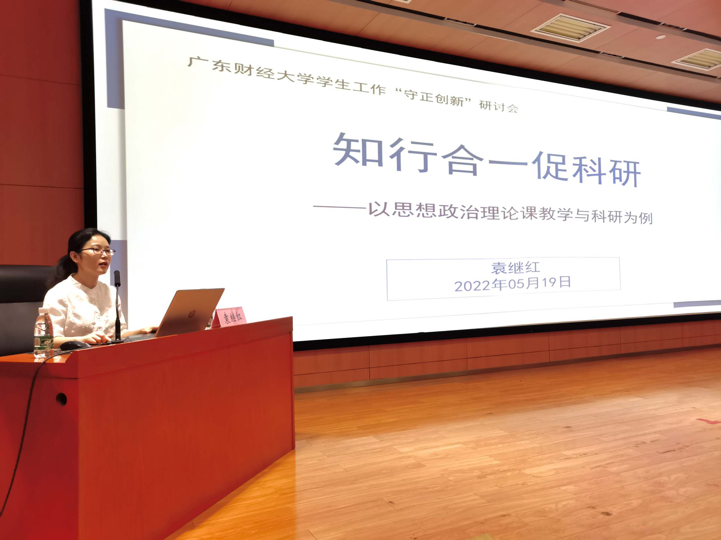 袁继红从思政教师队伍建设角度,以“知行合一促科研”为主题,从辅导员与思政课教师的关系、思政课教学发展空间、思政课科研发展空间三方面进行了专题报告。