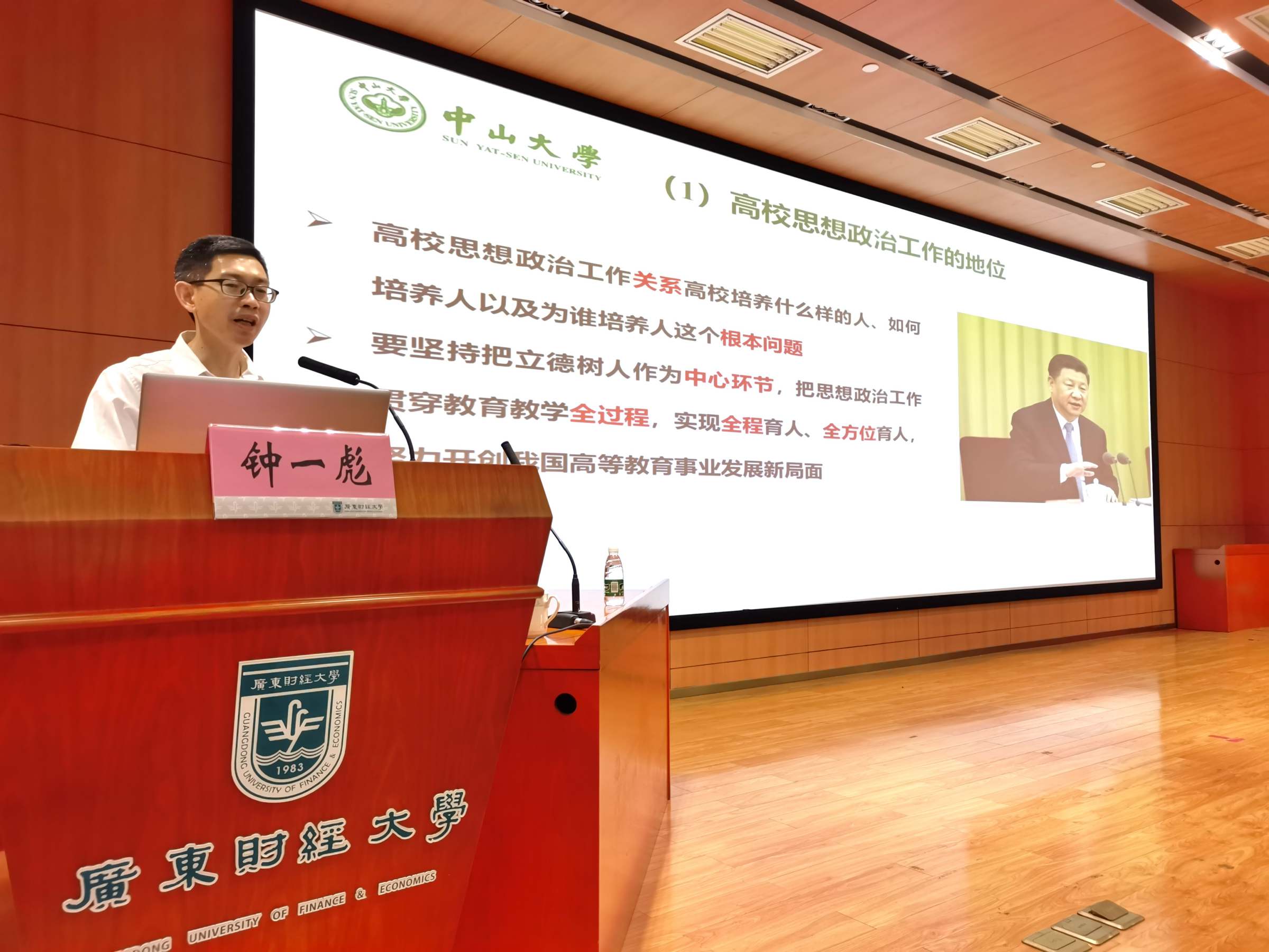本次研讨会邀请了中山大学学工部部长钟一彪教授、佛山科学技术学院学工部部长余俊渠教授和我校马克思主义学院院长袁继红教授作专题报告;艺术与设计学院副书记林强、法学院辅导员李培亮、财政税务学院辅导员李威威、金融学院辅导员吴昇宇作为学生工作队伍代表进行主题交流。