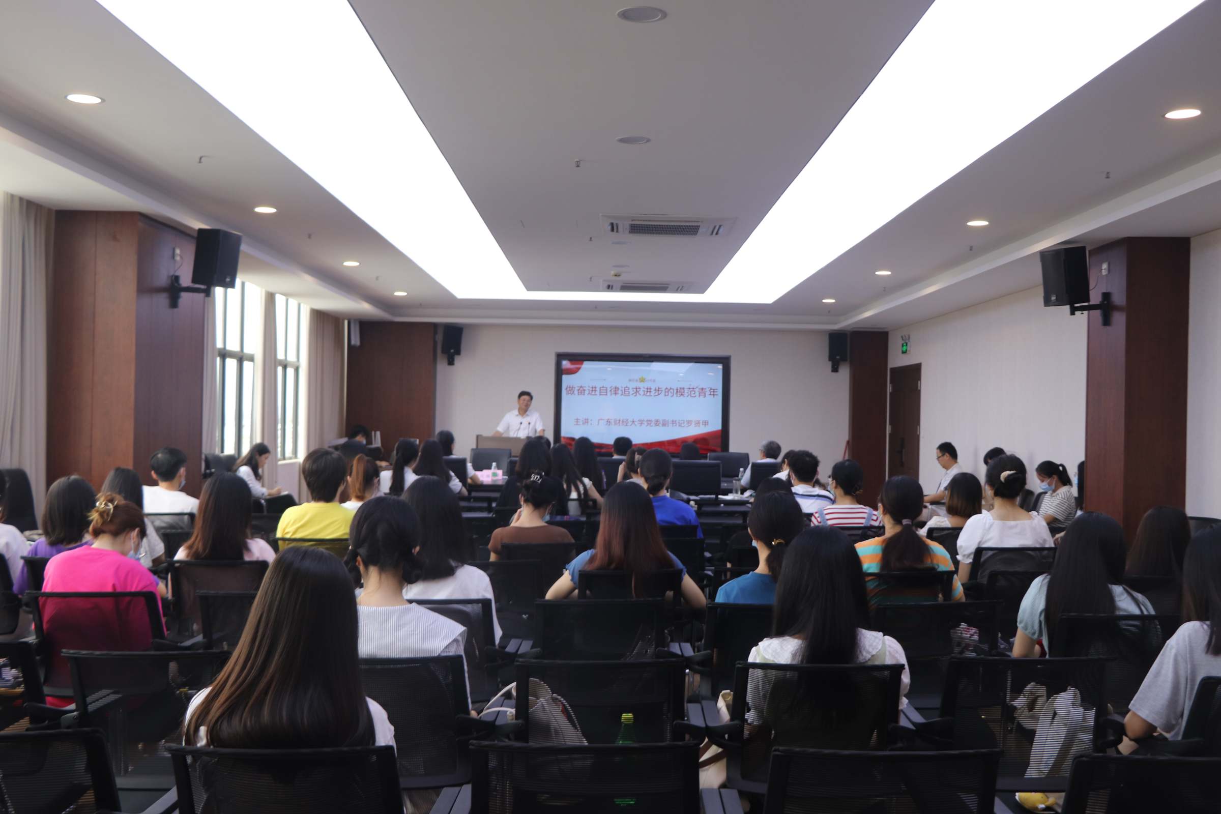 外国语学院党政领导,本科生第一、第二党支部全体党员,研究生党支部全体党员,院团委、学生会学生代表等共70多人聆听党课。