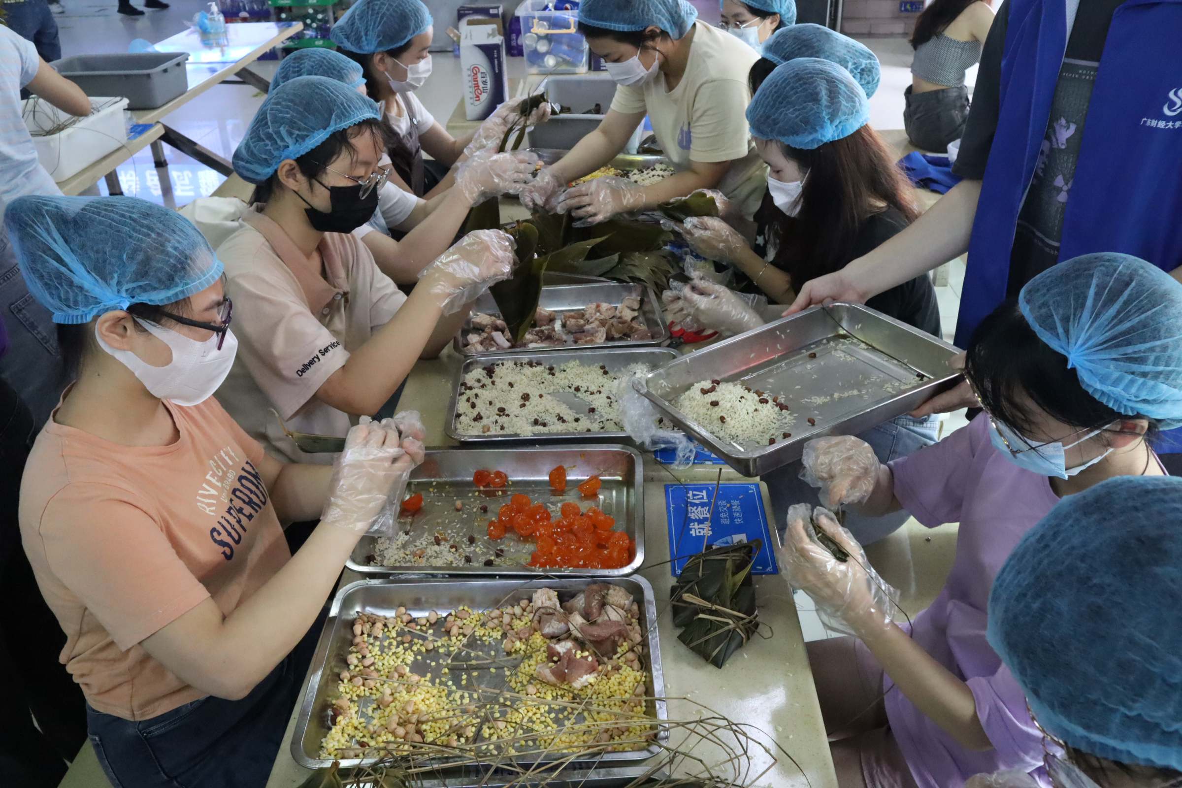6月3日,后勤处、校团委、校学生会在广州校区学一饭堂联合举办“‘粽’情‘粽’意过端午”留校同学包粽子活动。副校长陈国栋、学工部、研工部、后勤处、校团委负责人、各学院学生工作负责人来到活动现场,与各学院留校学生代表一起动手包粽子、话家常,共度浓情端午。