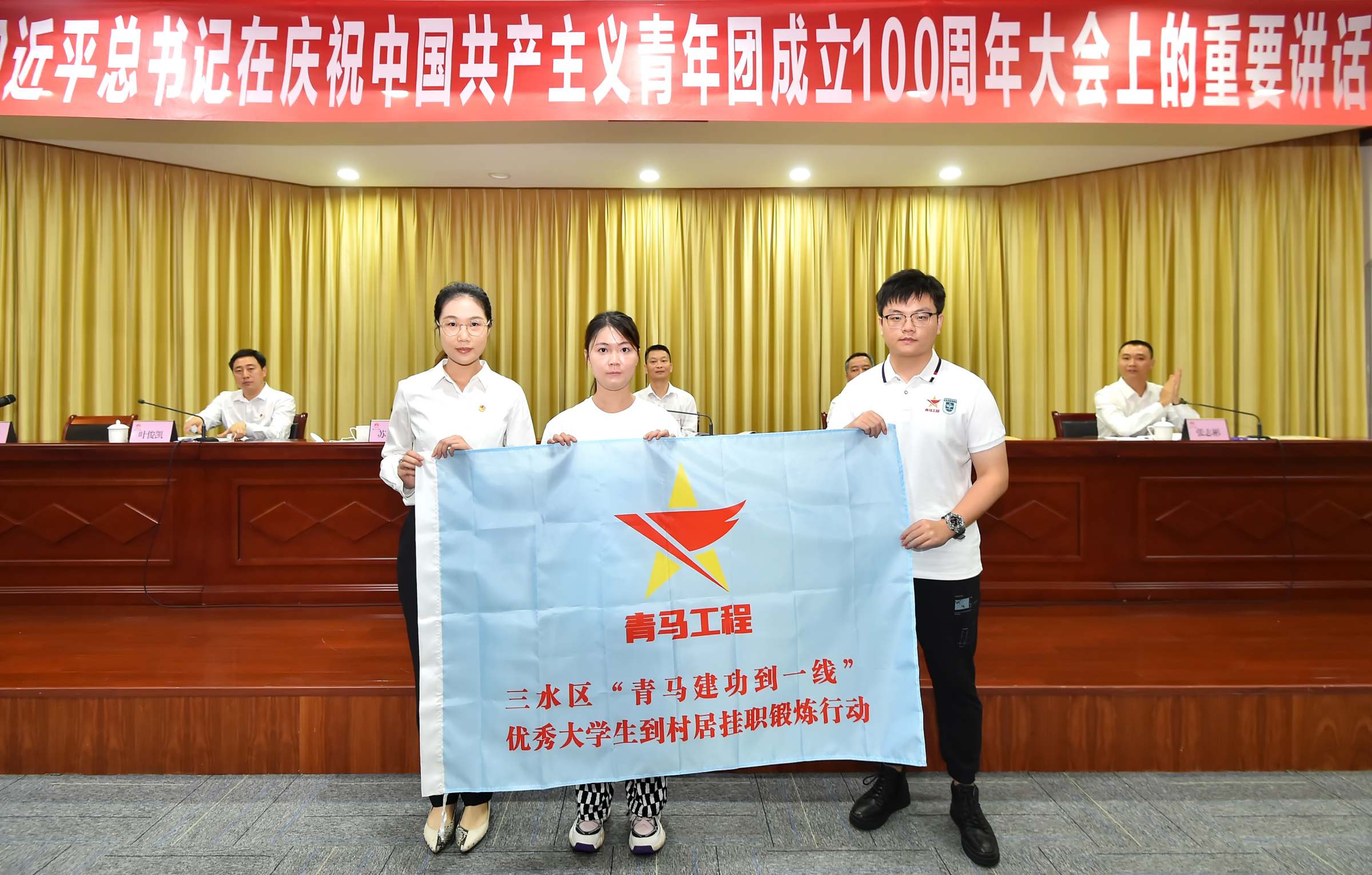 三水区“青马建功到一线”优秀大学生到村居挂职锻炼行动由我校团委联合三水区团区委于2021年发起,我校优秀“青马学员”以团队模式结对村居挂职锻炼,由社区团委书记担任学员的实践导师,对学员开展培训和指导,帮助其尽快熟悉村居一线情况并展开工作。三水区委区政府高度重视“青马建功到一线”项目,区委组织部指导项目具体开展。5月31日,在三水区学习贯彻习近平总书记在庆祝中国共产主义青年团成立100周年大会上的重要讲话精神工作会议上,在区委书记李军的见证下,三水团区委副书记陈晓彤为村居和大学生代表授旗。接下来,该项目将探索“精准化选材-多元化培育-精心用其所长-全链条跟踪管理-分类奖储”的培育模式,为优秀大学生群体搭建知三水事、明三水情、做三水人的一线锻炼平台,为城市社区治理、乡村全域振兴充实青春力量。