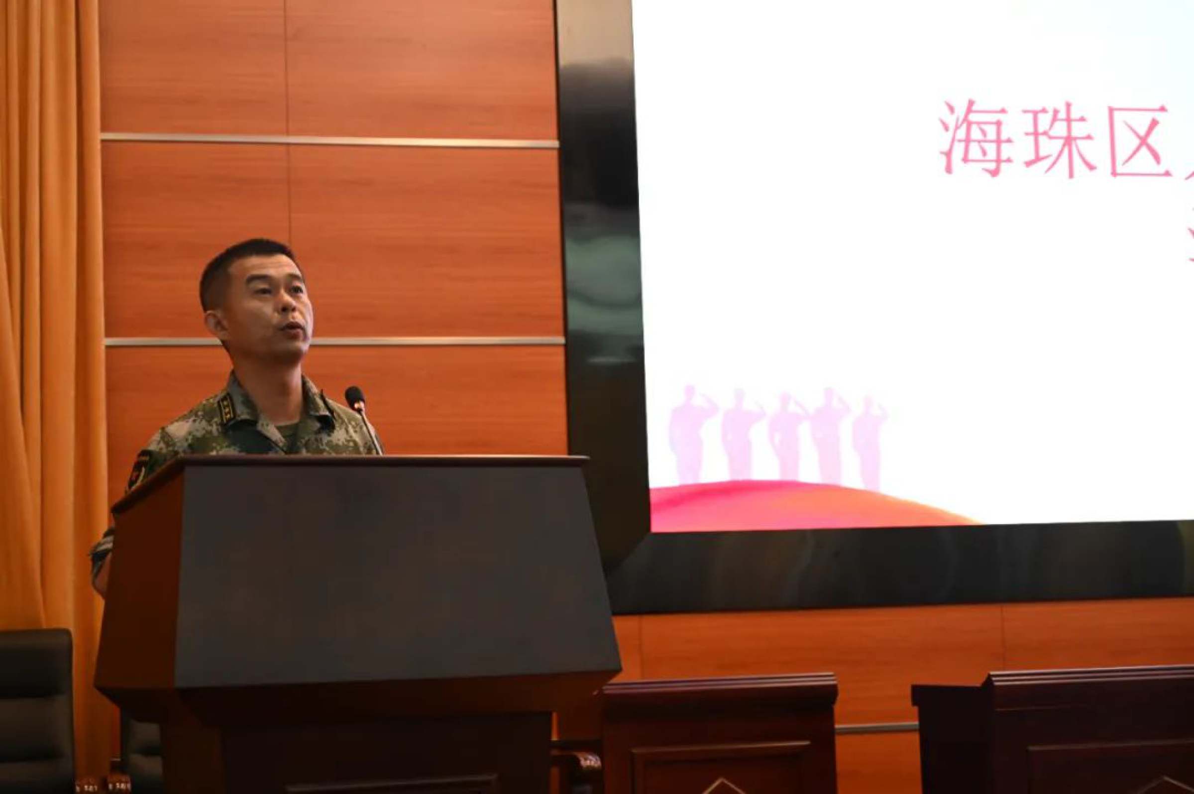 为响应国家参军入伍号召,激发广大学生应征入伍积极性,6月14日,我校武装部在综合楼408会议厅召开2022年征兵动员暨政策宣讲会。海珠区人民武装部部长涂勇,学校武装部部长苏明华、副部长黄东阳、学生工作书记代表、征兵工作辅导员、2011级汉语言国际教育专业退役校友房贤辉、民兵连骨干以及2022届毕业生代表参加会议。会议由民兵连陈莹主持。
