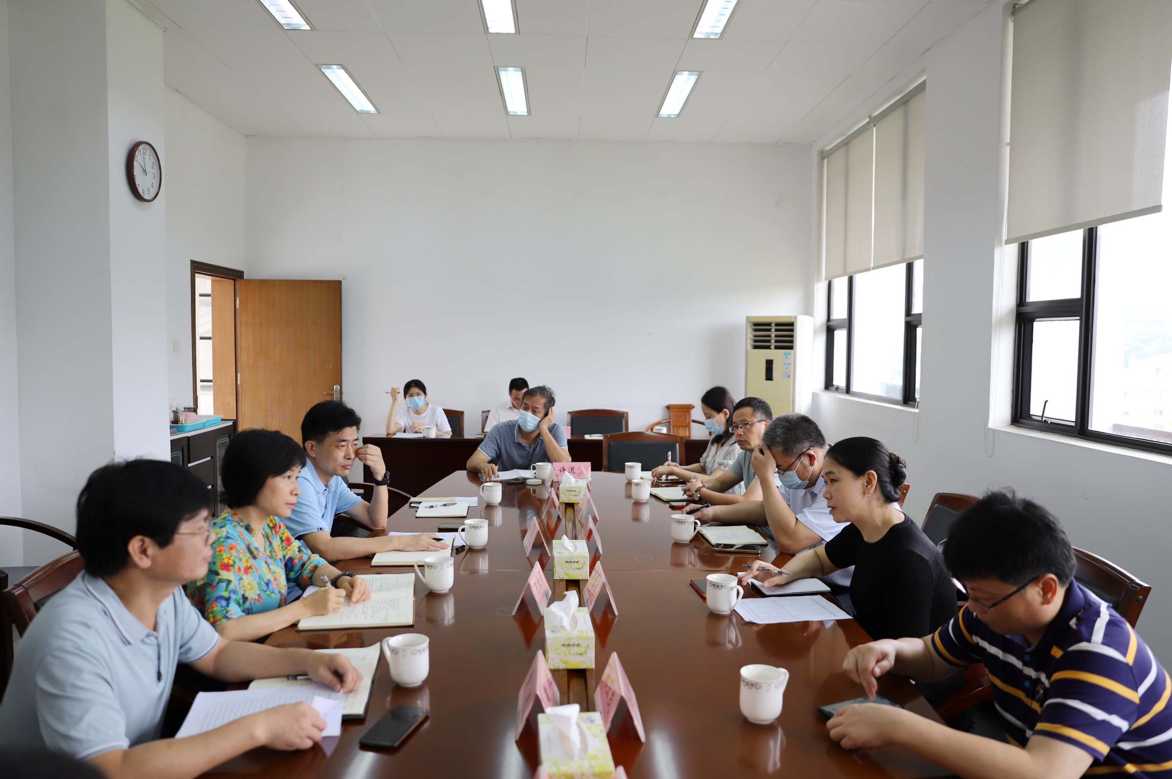 6月16日上午,三水区教育局副局长罗嘉幸、教育局职成股、安保股、校园疫情防控专班、信息装备室相关工作人员一行8人到佛山校区开展2022年第二季度联系走访工作。佛山校区管委副主任陈红丽、田辉和管委会各部门、学工部、研工部、网络信息与教育技术中心、门诊部主要负责人参加交流座谈。