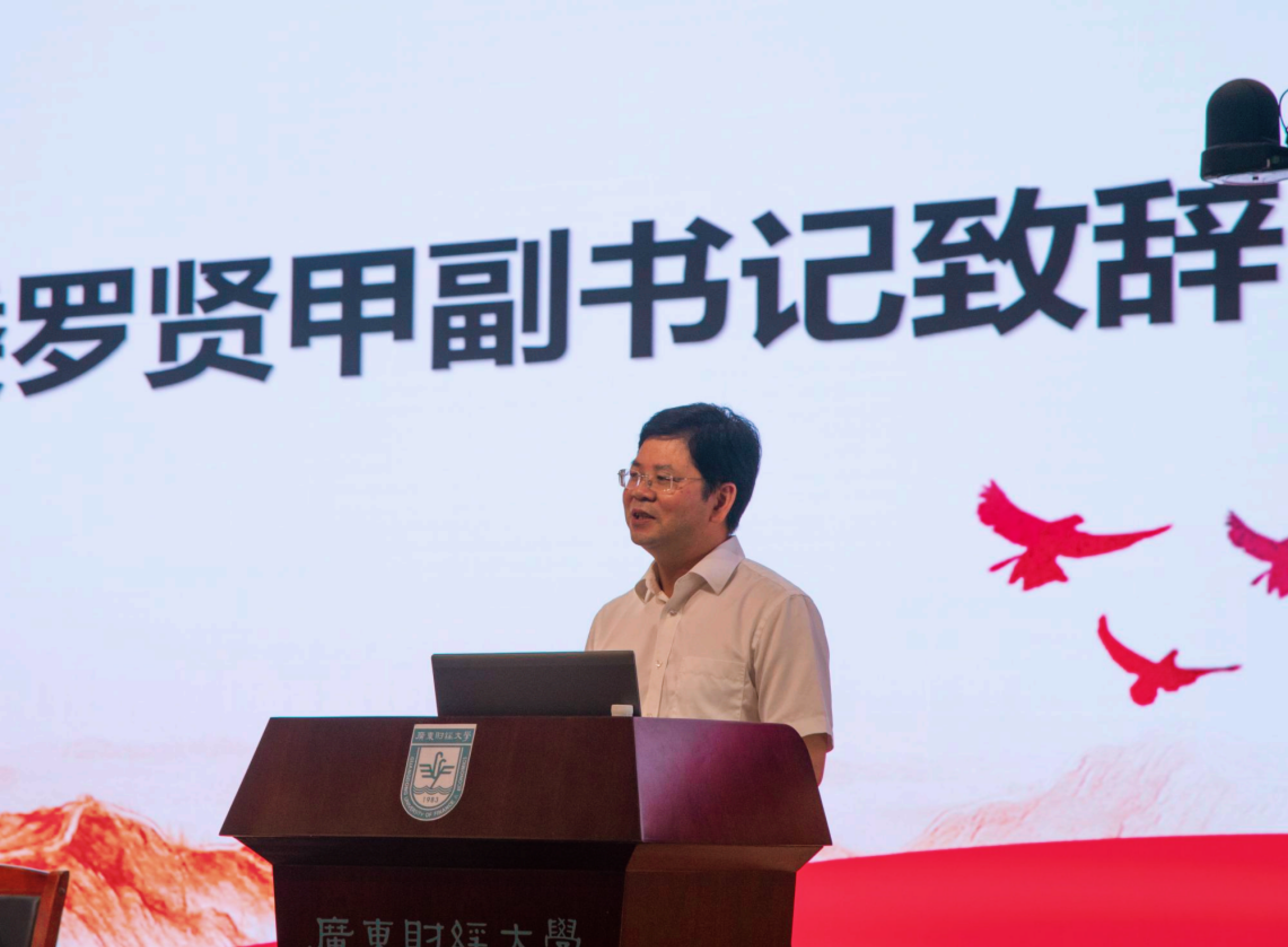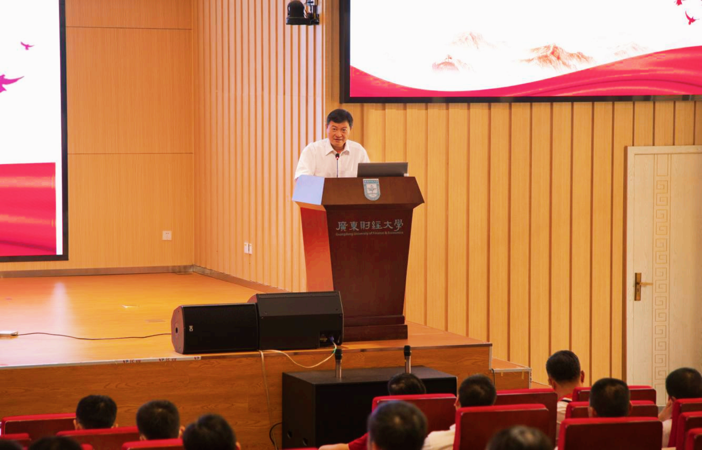7月11日上午, 2022年广东财经大学基础教育帮扶汕头市潮南区骨干教师和肇庆市封开县骨干教师培训班开班典礼在佛山校区同心楼学术报告厅举行。校党委副书记罗贤甲,潮南区副区长许琪、教育局局长杨桂阳、副局长郑少涛,封开县教育局副局长黎钊南等以及中小学校长和骨干教师培训班110名学员参加了开班典礼。开班典礼由校基础教育帮扶领导小组办公室主任、发展规划处处长晏宗新主持。