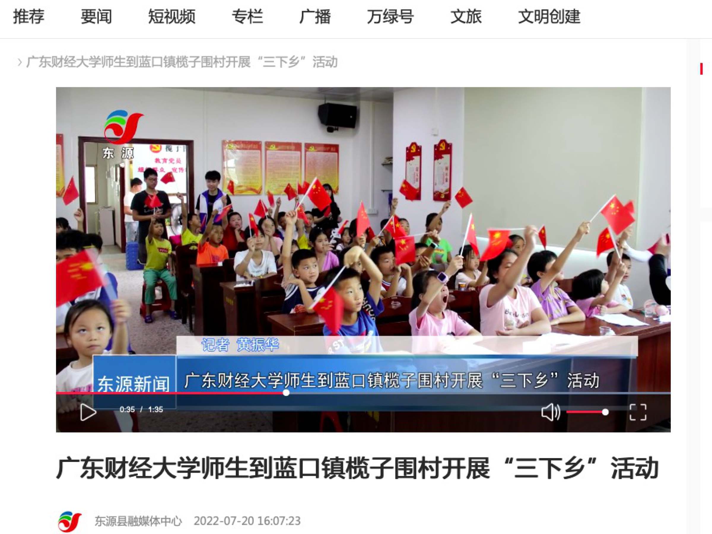 7月10日至17日,财政税务学院“向阳花”团队21位师生以“‘乐享党史’悟初心,砥砺前行担使命”为主题,在河源市东源县蓝口镇榄子围村开展为期8天的大学生暑期“三下乡”社会实践活动。
