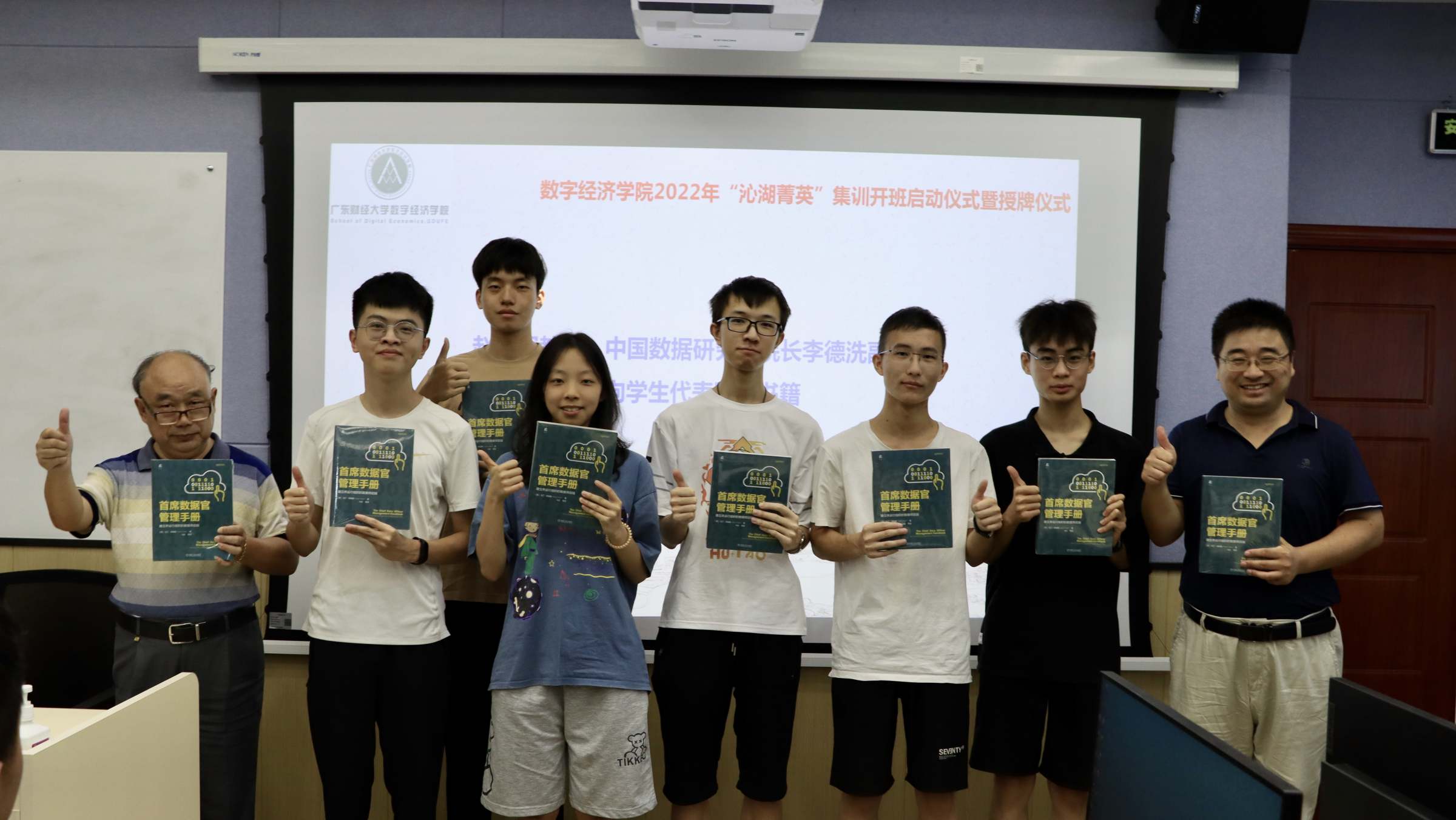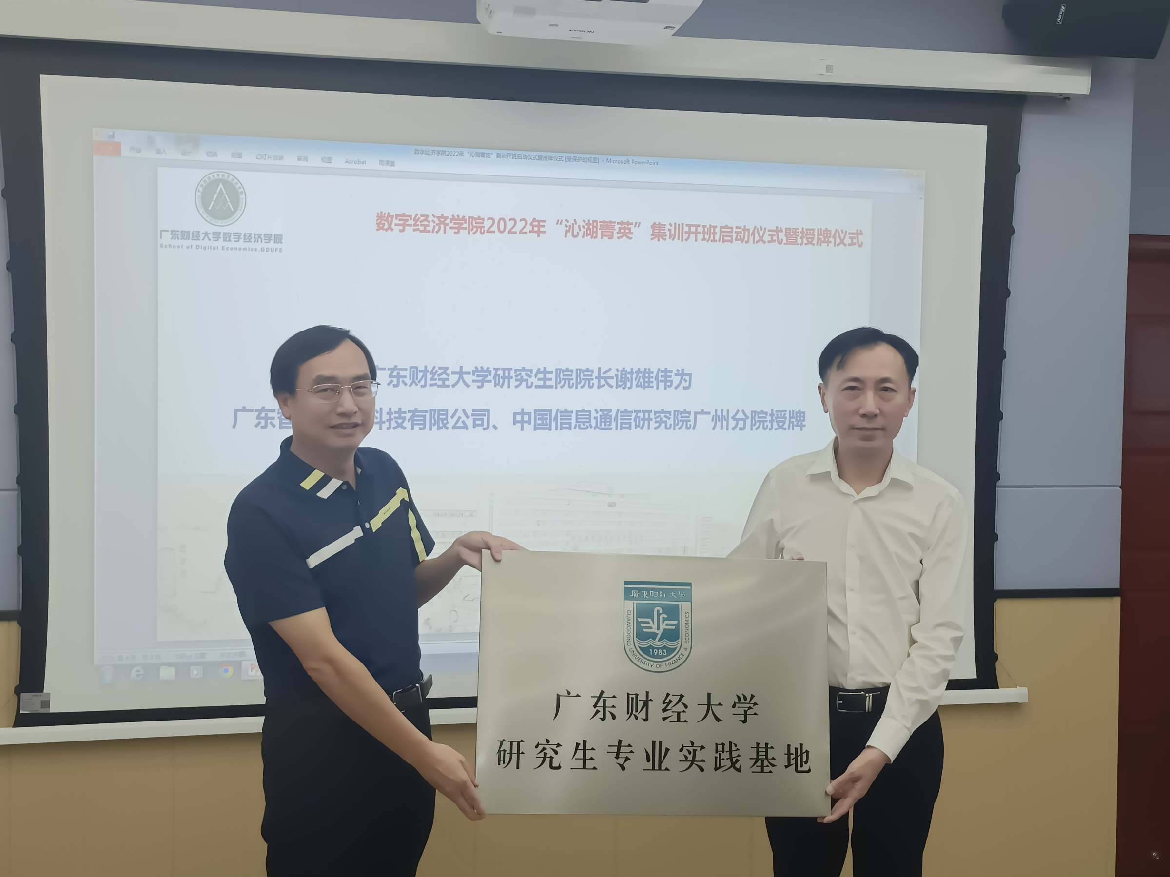 8月1日,数字经济学院2022年“沁湖菁英”集训开班启动仪式暨授牌仪式在广州校区实验楼408举行,开启了数字经济学院创新人才培养模式的探索之路。广东智信信息科技股份有限公司董事长蔡立群、业务总监葛洪波,中国信息通信研究院广州分院副院长朱金周博士,我校研究生院院长谢雄伟,数字经济学院党委书记李恩华、副院长王方方、赵海军教授,中国数据研究院院长李德洗副教授,以及数字经济学院27位“沁湖菁英“参加开班仪式。开班仪式由李恩华主持。