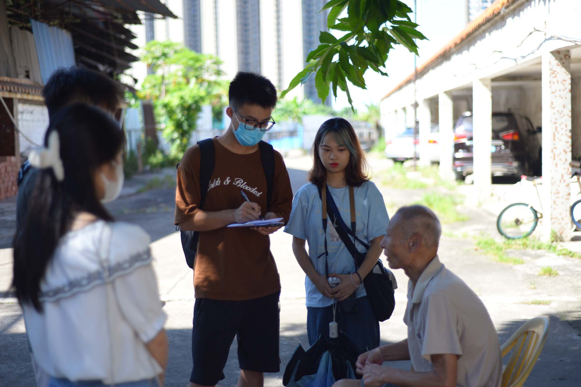 活动期间,团队实地调研了国家级地理标志、非物质文化遗产、有“软黄金”美誉的香云纱。通过走访天意莨园企业、香云纱交易中心、香云纱协会和伦教宣传文化旅游办公室,队员们了解了香云纱的晒莨过程。