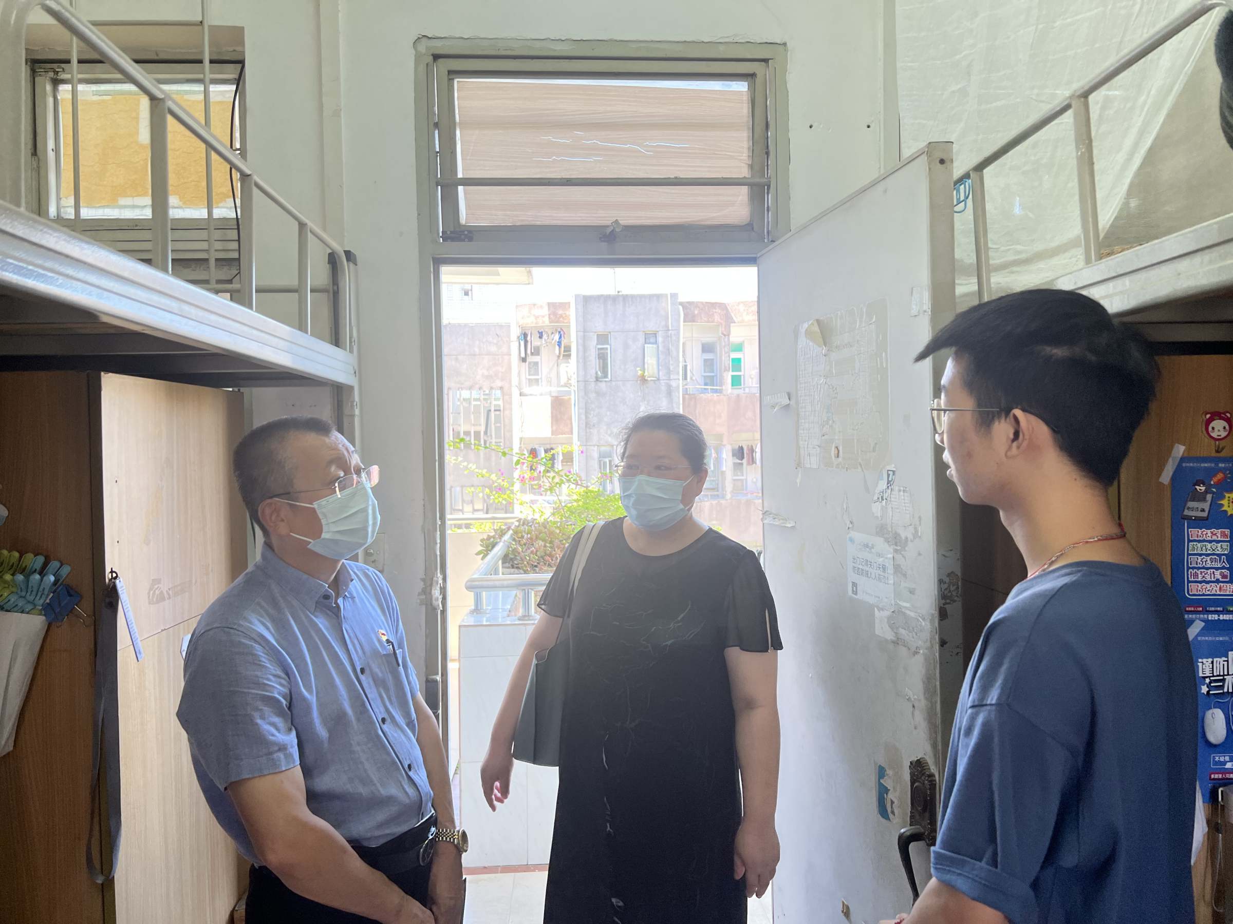 为关心和了解留校学生的思想、学习和生活状况,加强对学生的安全意识教育,8月7日上午,学校党委副书记陈树武到文旅学院2019级学生宿舍看望暑期留校学生。文旅学院党委书记文波、学院党委副书记王健、2019级辅导员杨婷陪同走访。