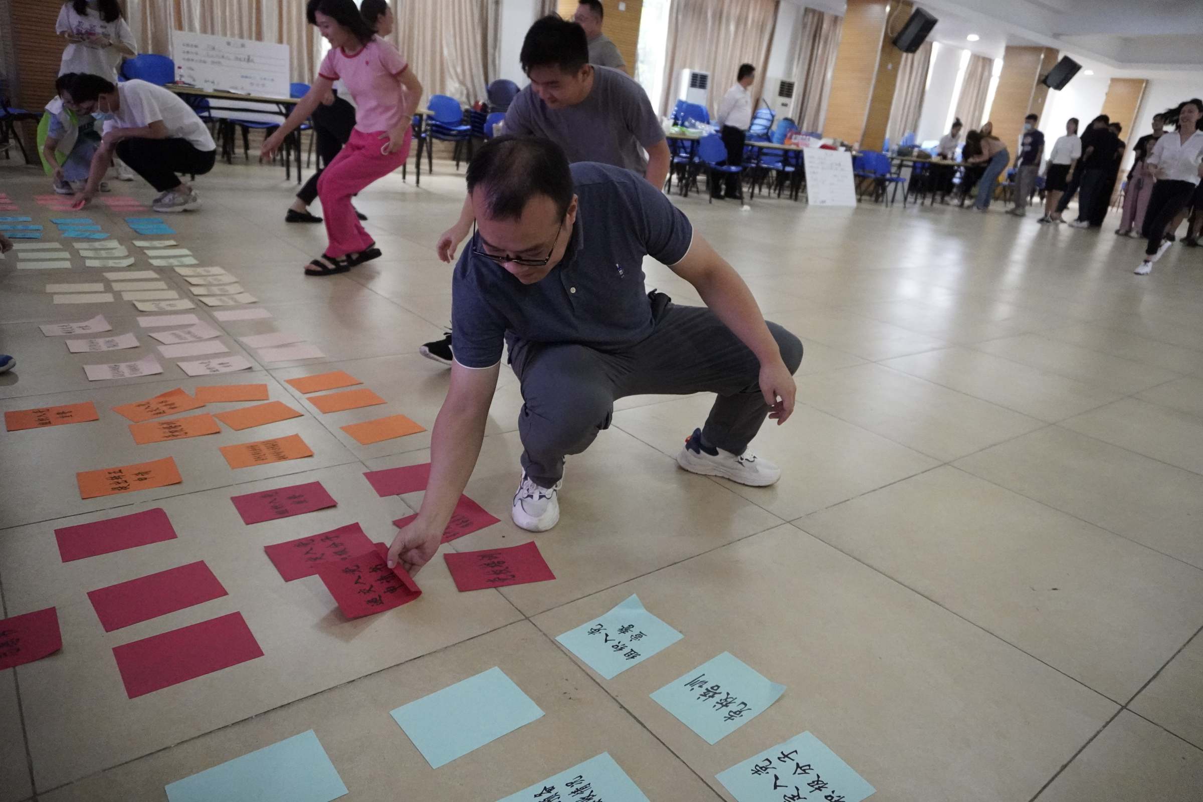 随后,围绕“破冰之旅——有缘来相聚——业务知识接力赛——心理危机事件演练——团队组建——突发事件应对演练——经验分享——生涯规划”等系列活动进行了生动、专业、严肃的培训活动。