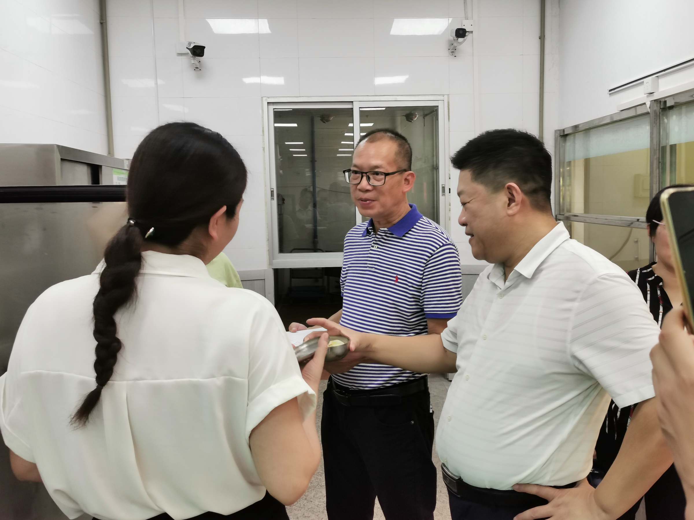 刘祖华每到一处,便详细了解开学相关后勤保障的落实情况,查看了迎新工作现场“后勤服务站”的设立情况,抽查学生宿舍清洁卫生及设备检修维护的质量,询问食堂安全检查及供餐食材准备情况,了解常态化疫情防控措施及观察区房间的使用管理情况。检查过程中,刘祖华对暑假期间后勤处所做的工作和取得的成绩给予了充分肯定,代表学校对顶风冒雨、坚守在工作一线的后勤员工和物业人员表示亲切慰问和诚挚感谢。