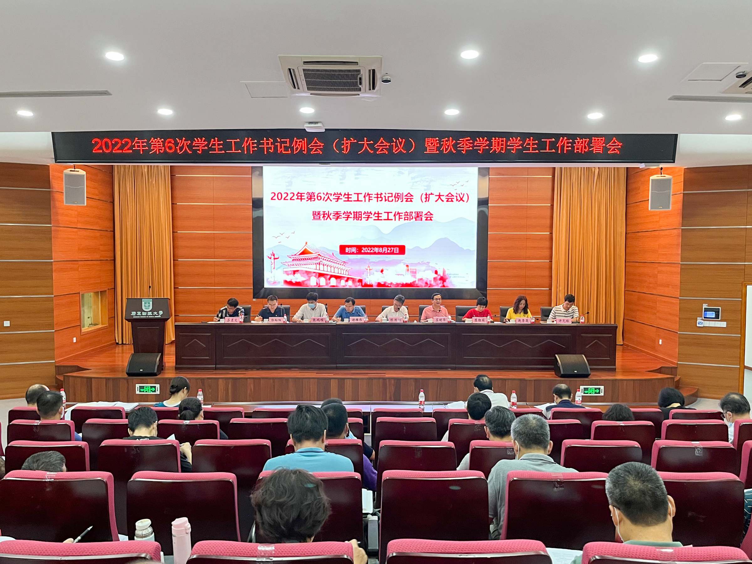 8月27日,副校长陈国栋在广州校区综合楼408主持召开2022年第6次学生工作书记例会(扩大会议)暨秋季学期学生工作部署会,就新学期学生工作进行部署。学工部、研工部、校团委、保卫处、佛山校区管委会、国际交流与合作处、后勤处、门诊部等部门负责人,各培养单位党委书记、学生工作负责人,学工部全体人员,全体辅导员参加了会议。