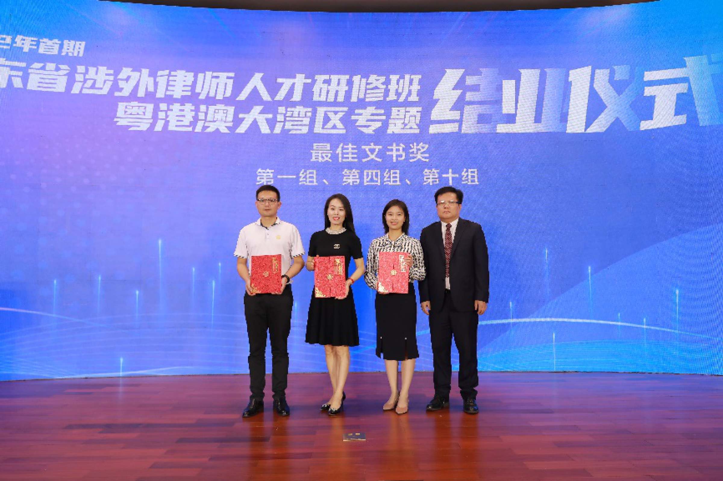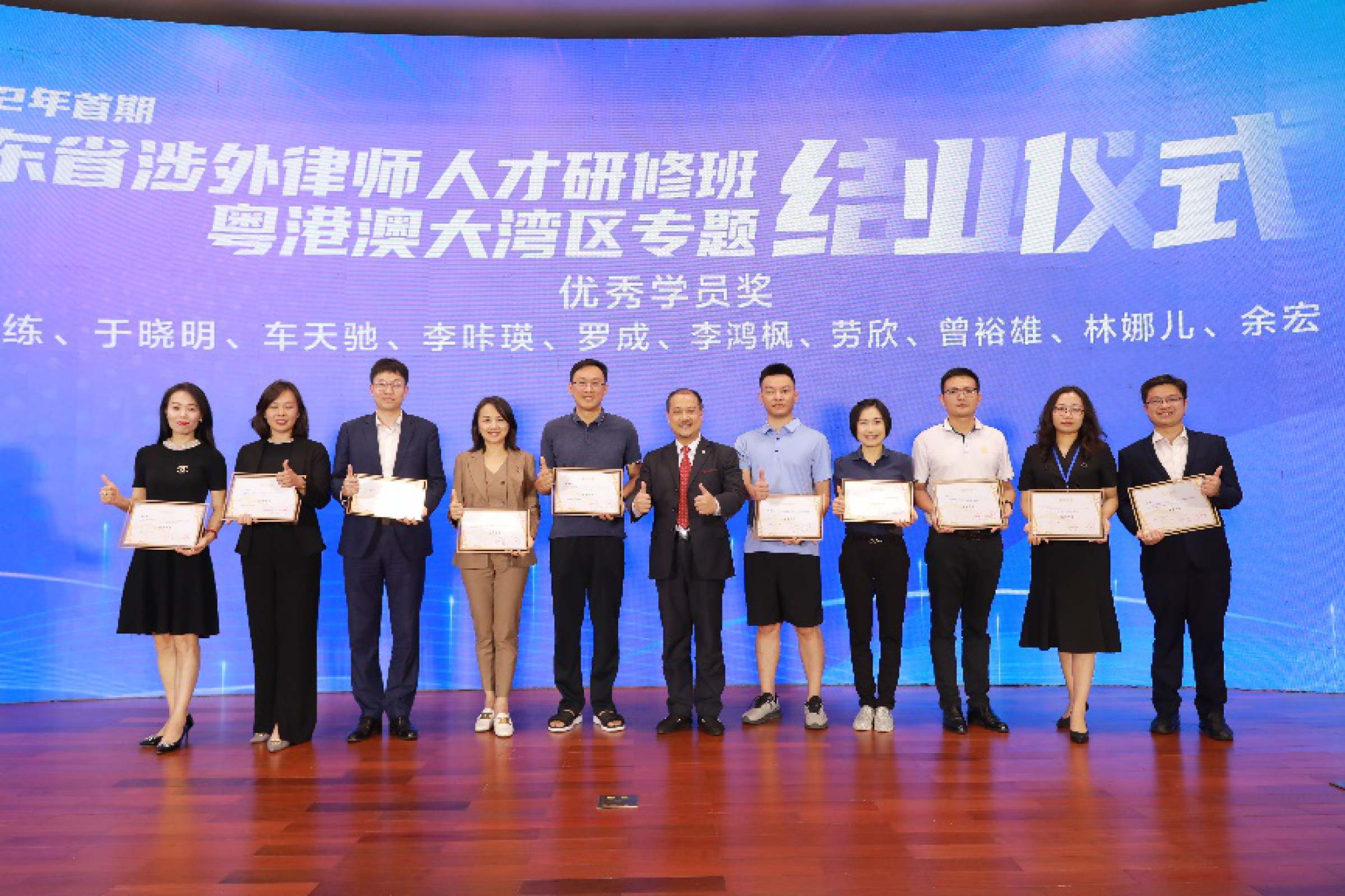 结业仪式上,研修班班长于晓明律师,优秀学员代表余宏律师、赖晓静律师、杨梅律师分别发言。他们代表全体学员感谢广东省司法厅、广东省律师协会、广东财经大学法学院对本次培训班的筹划和组织工作,并谈了研修学习的收获和感受。他们表示,将把学习收获转化为工作成效,努力提升涉外法律服务水平、携手打造好大湾区律师服务品牌。