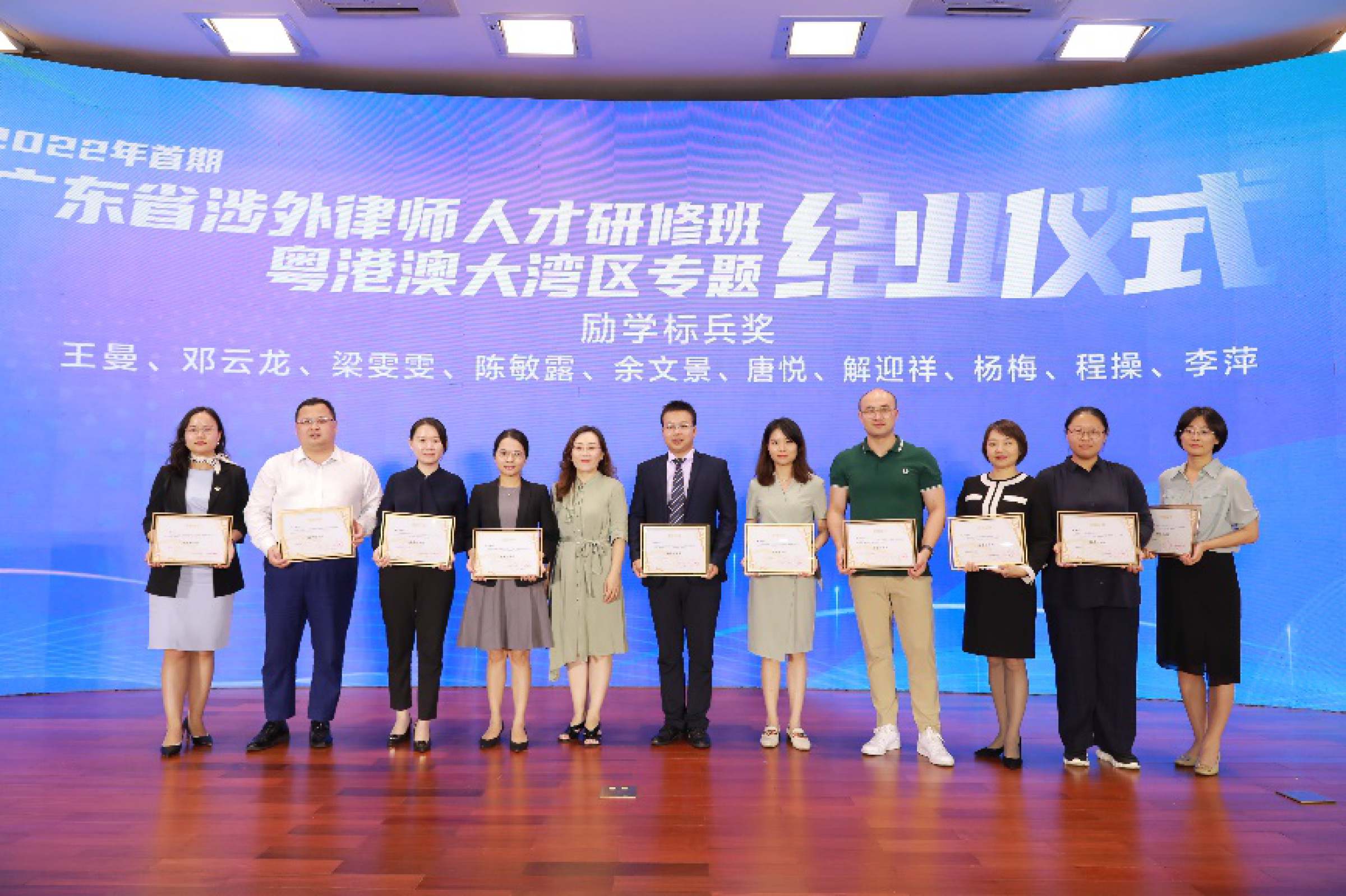 8月28日下午,由广东省司法厅、广东省律师协会主办,广东财经大学承办,广东省律师协会粤港澳大湾区工作委员会协办,为期8天的2022年首期广东省涉外律师人才研修班(粤港澳大湾区专题)落幕。广东省律师协会副会长陈方、副秘书长邓捷,我校法学院党委书记陈静、院长鲁晓明、副院长刘薇、曾祥生教授、朱姝副教授以及律师学员、研究生助教等参加了结业仪式。结业仪式由刘薇主持。